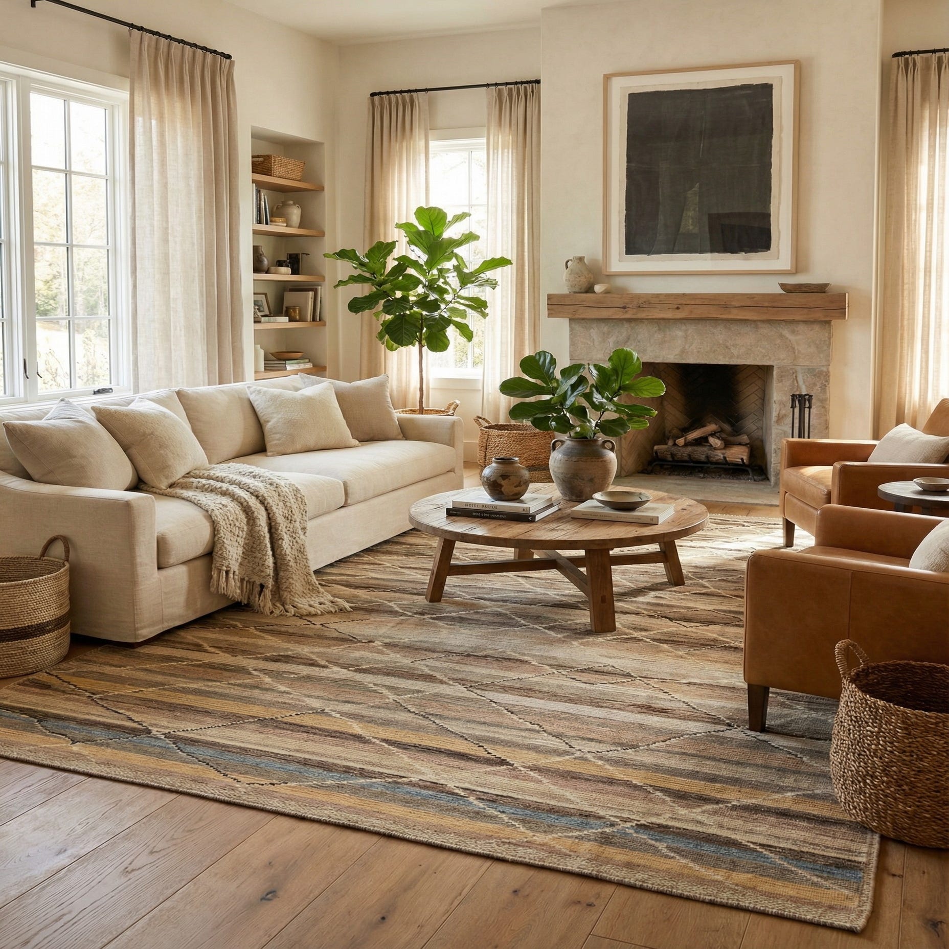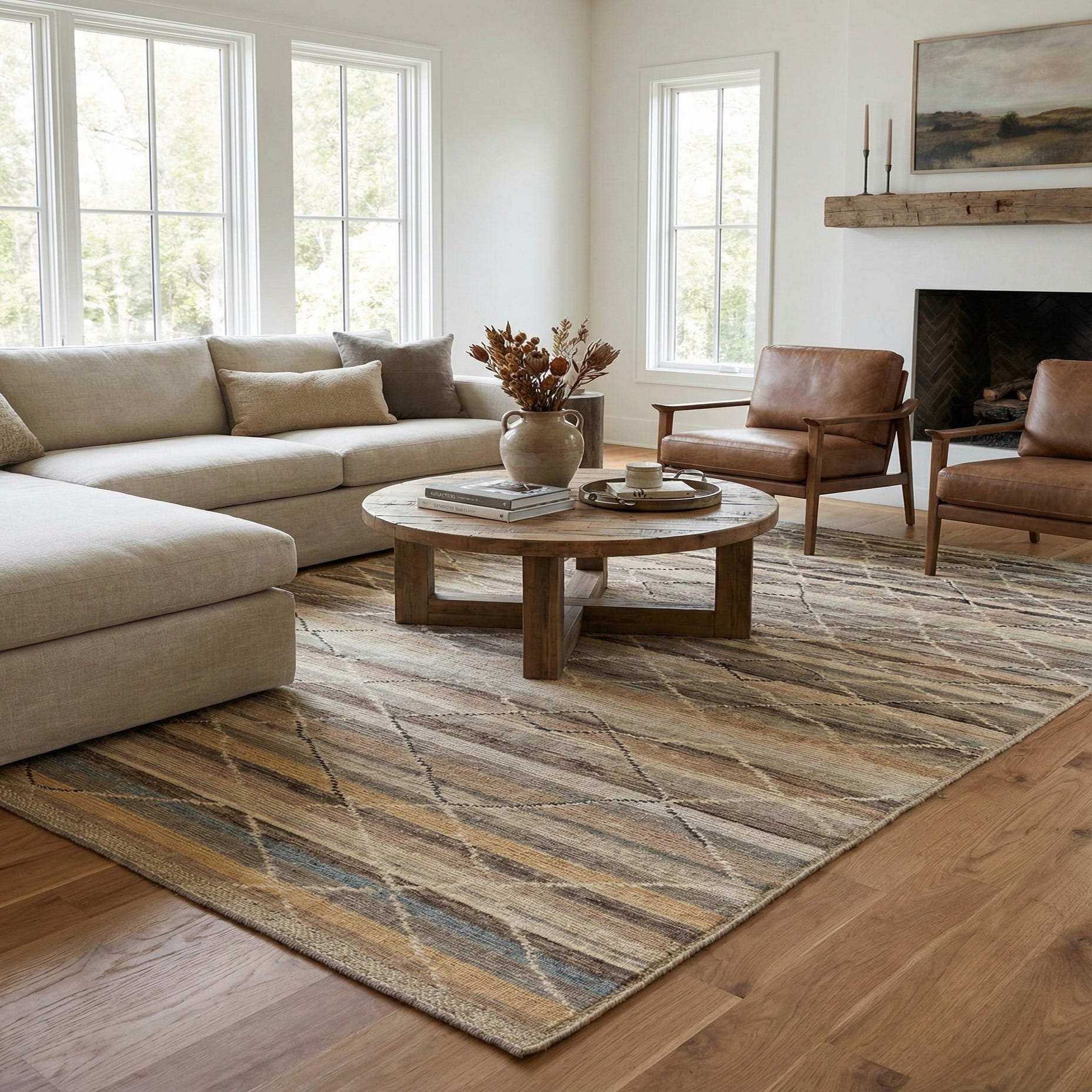 Primary color is Brown. Colors in this rug include: Brown, Beige, Black, Gray, Cream.