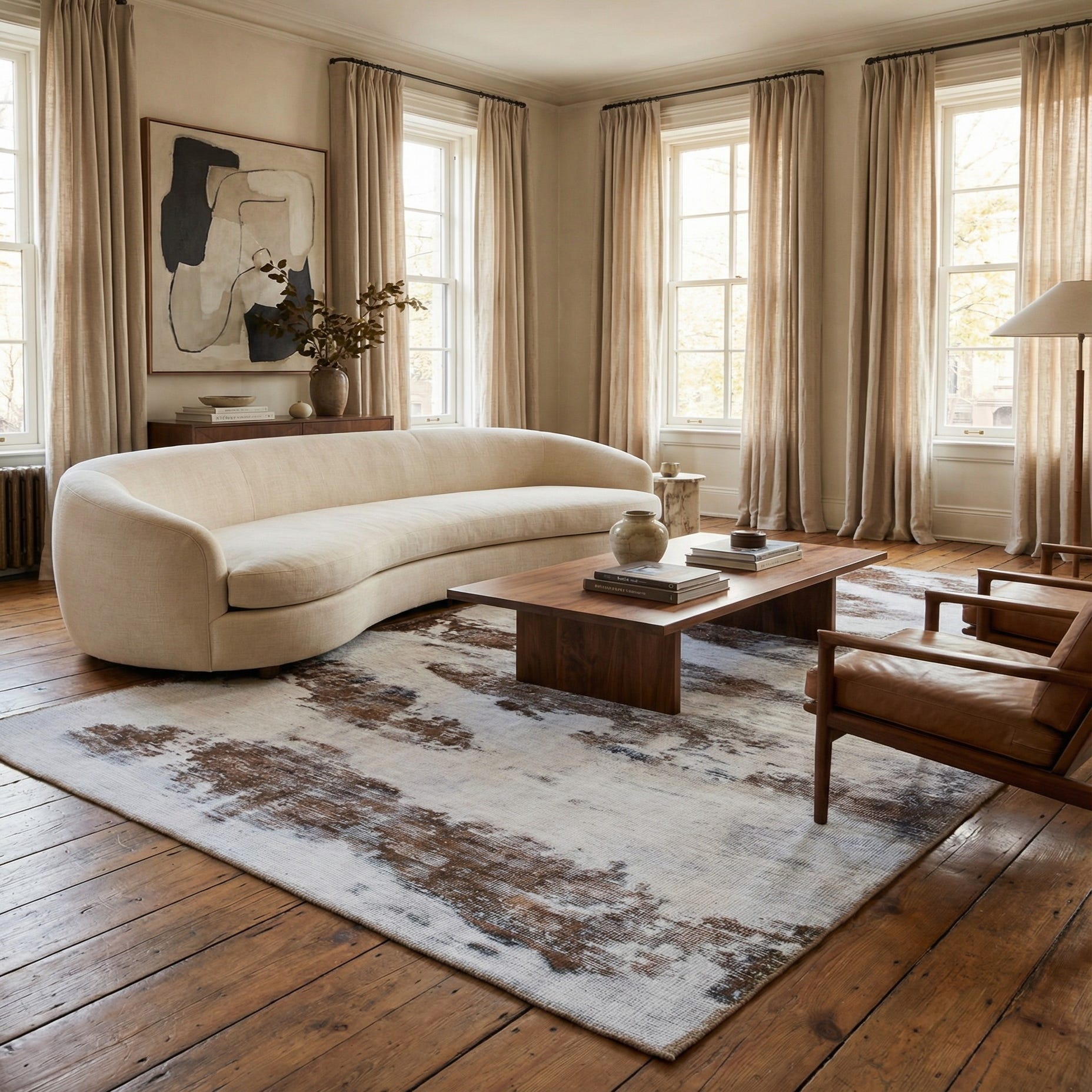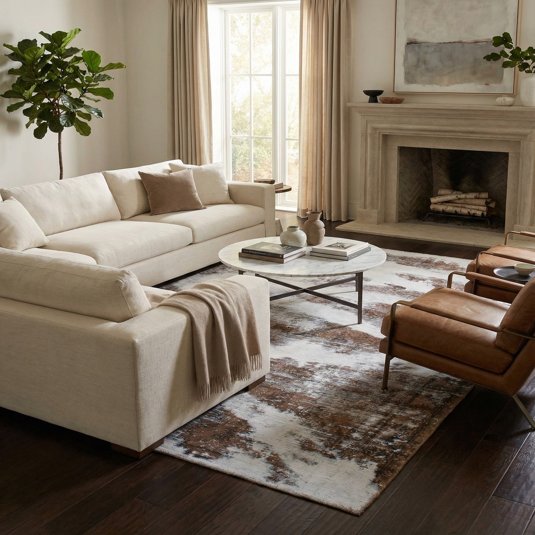 Primary color is Brown. Colors in this rug include: Brown, Beige, Gray, Light Brown, Ivory.