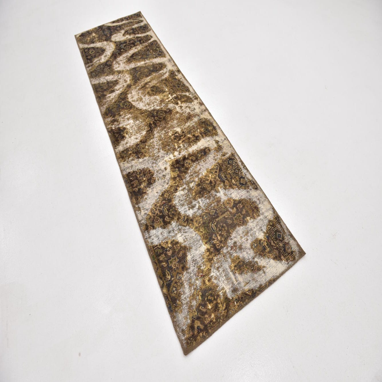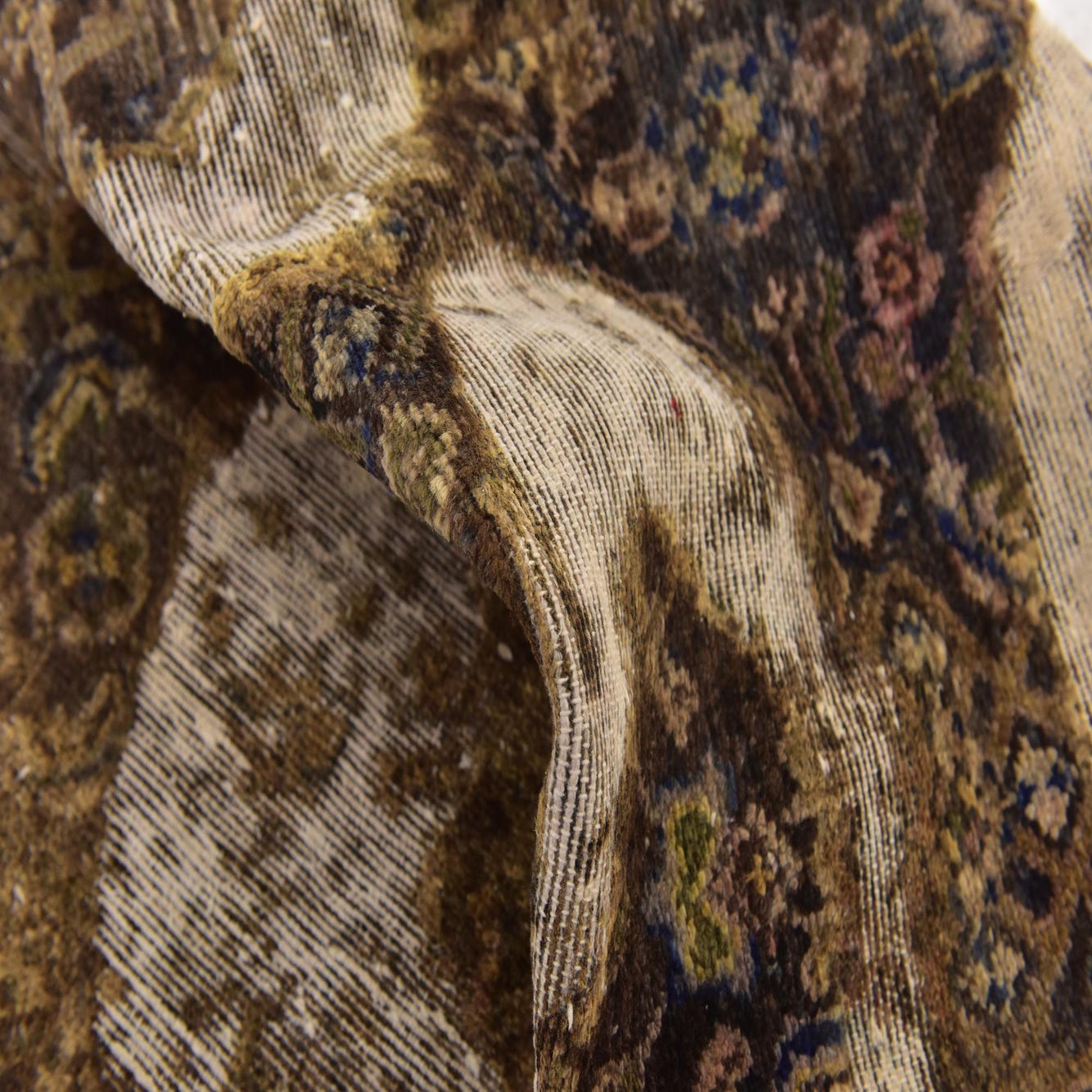 This Persian Ultra Vintage rug is an antique Persian Rug that has been washed, over-dyed, and then shaved down to a low pile. Look at the detail pictures to fully appreciate the uniqueness of this piece.