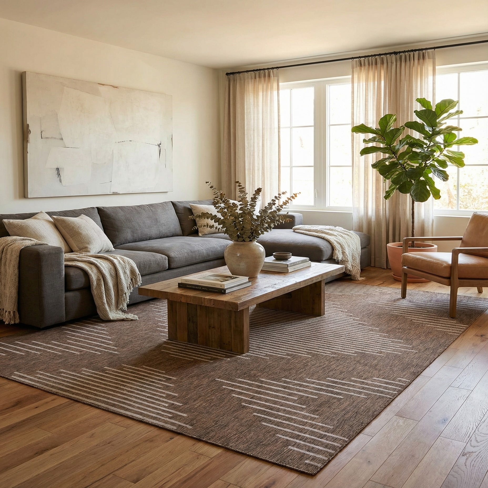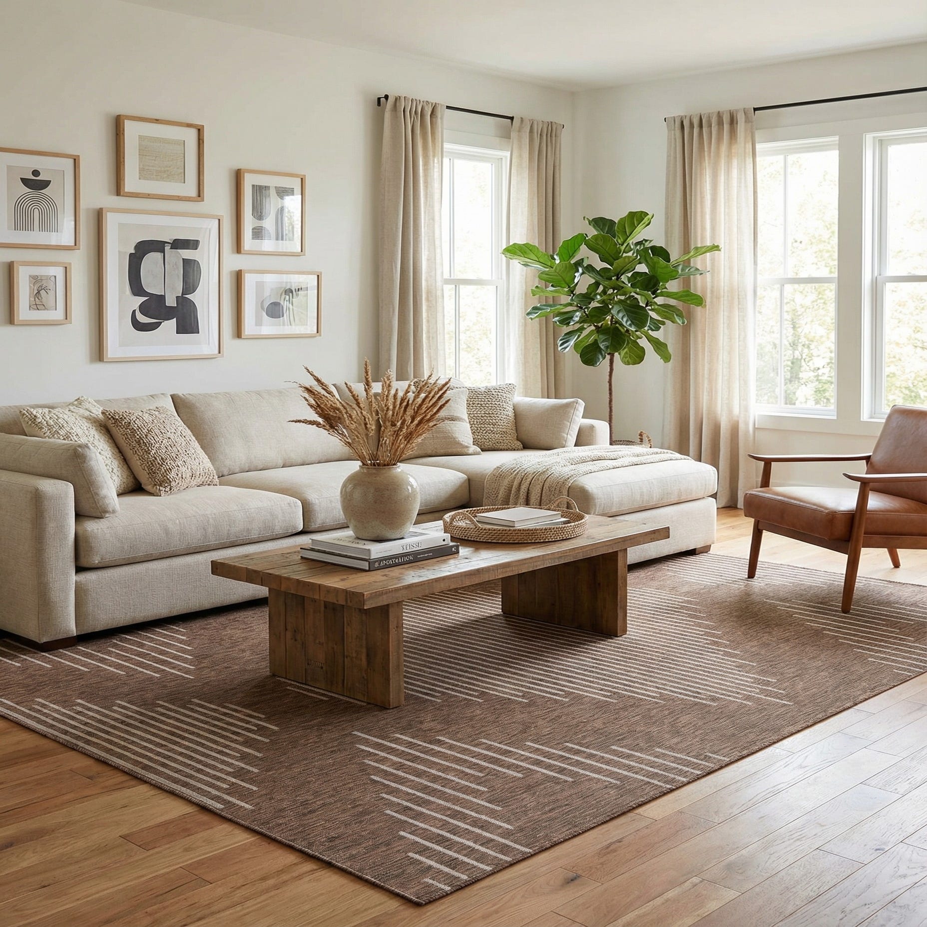 Primary color is Brown. Colors in this rug include: Brown, Ivory.