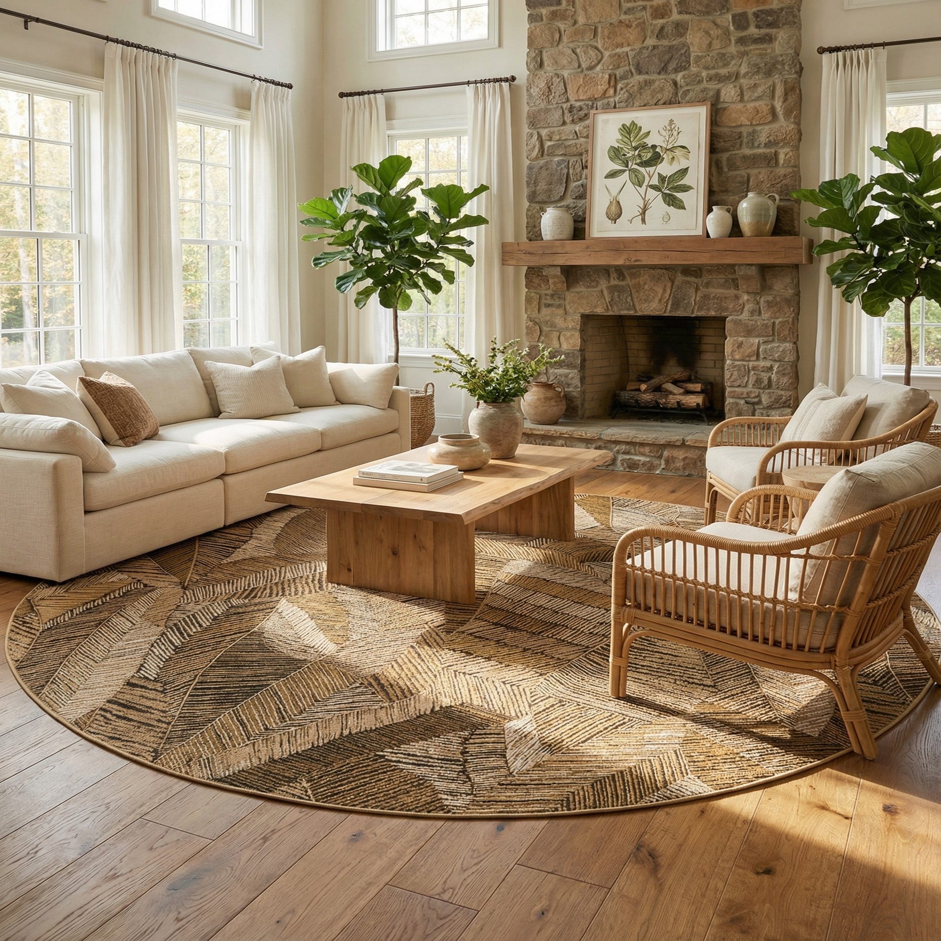 Detail image of 10' x 10'  Washable Botanical Indoor / Outdoor Round Rug