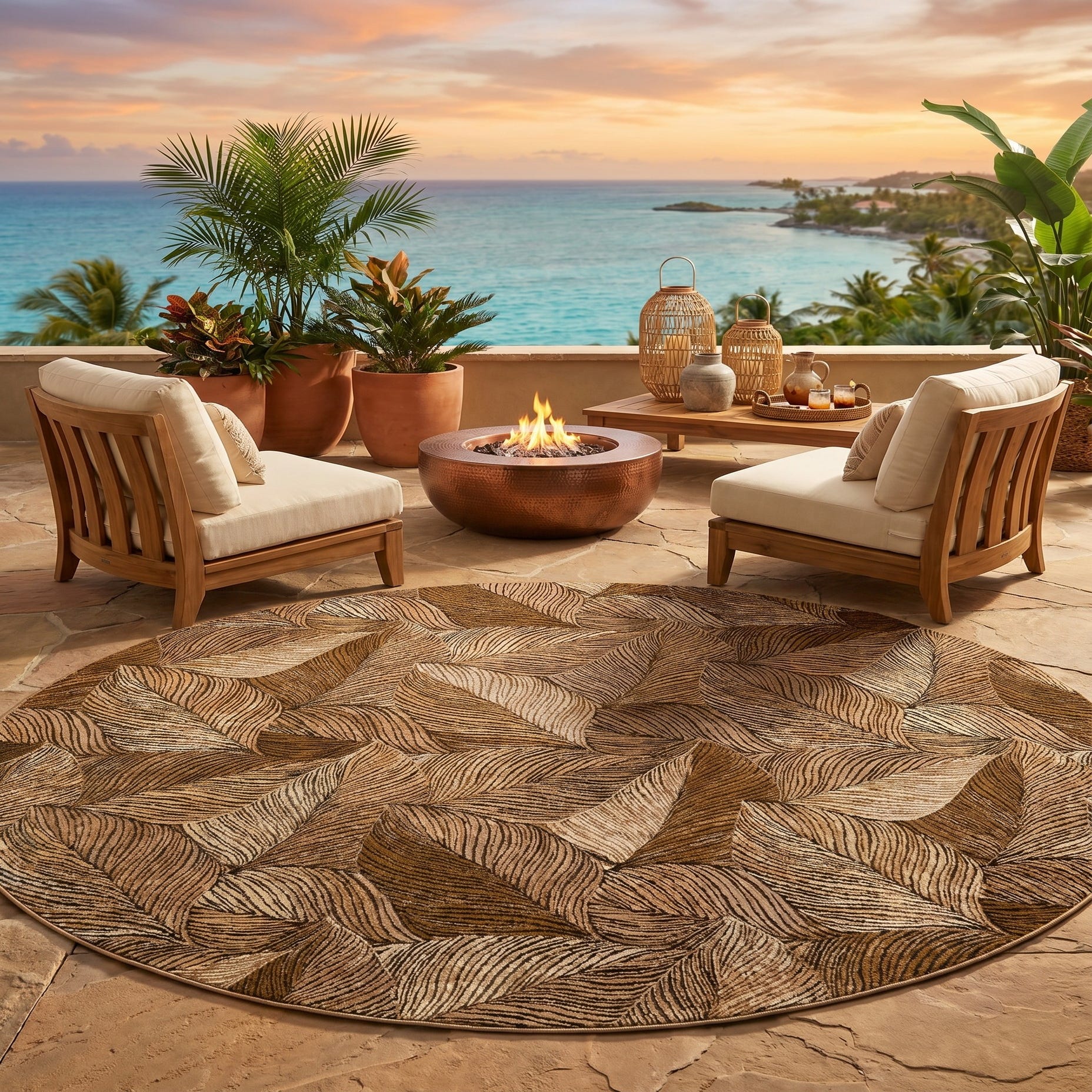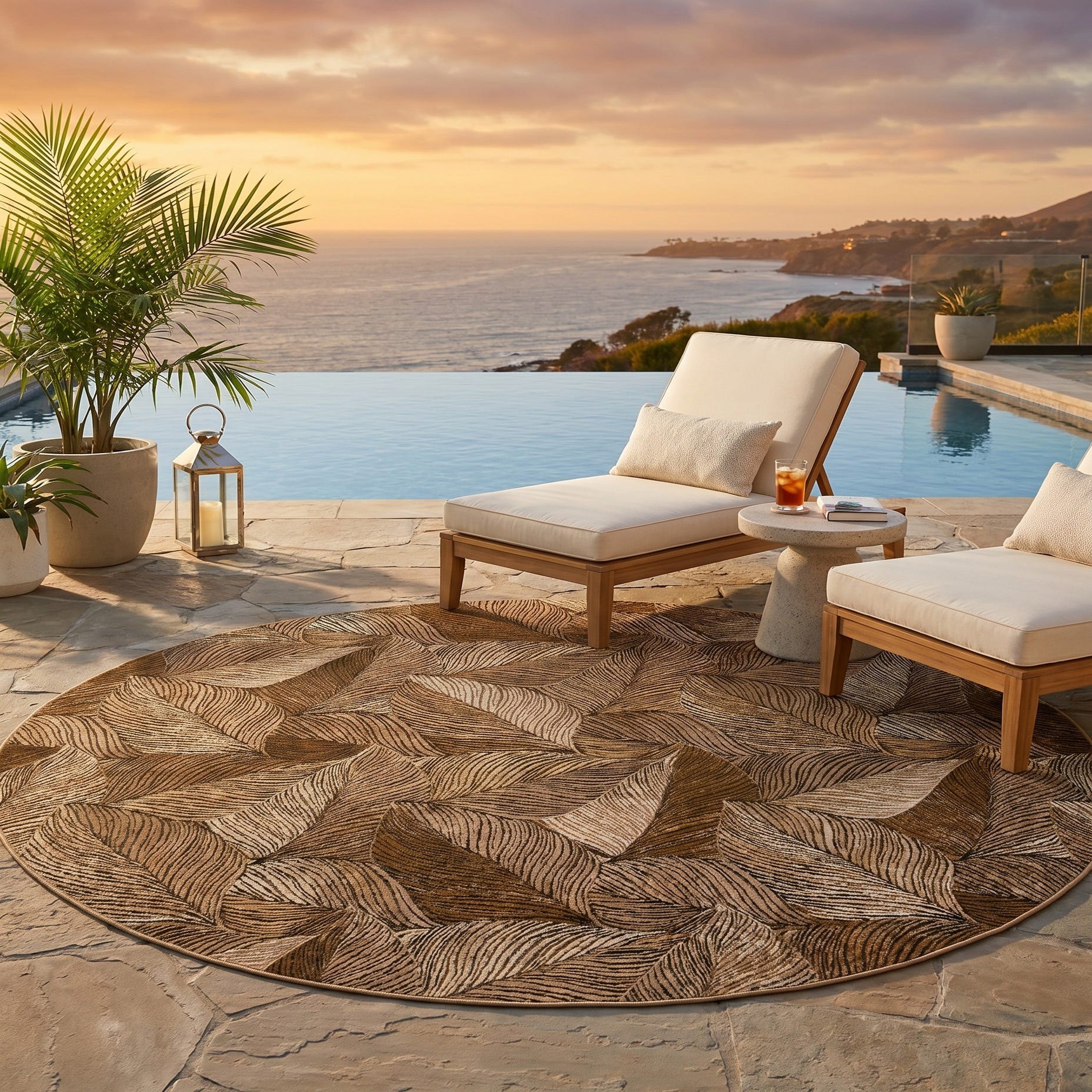 10' x 10' Easy-Clean Botanical Indoor / Outdoor Round Rug