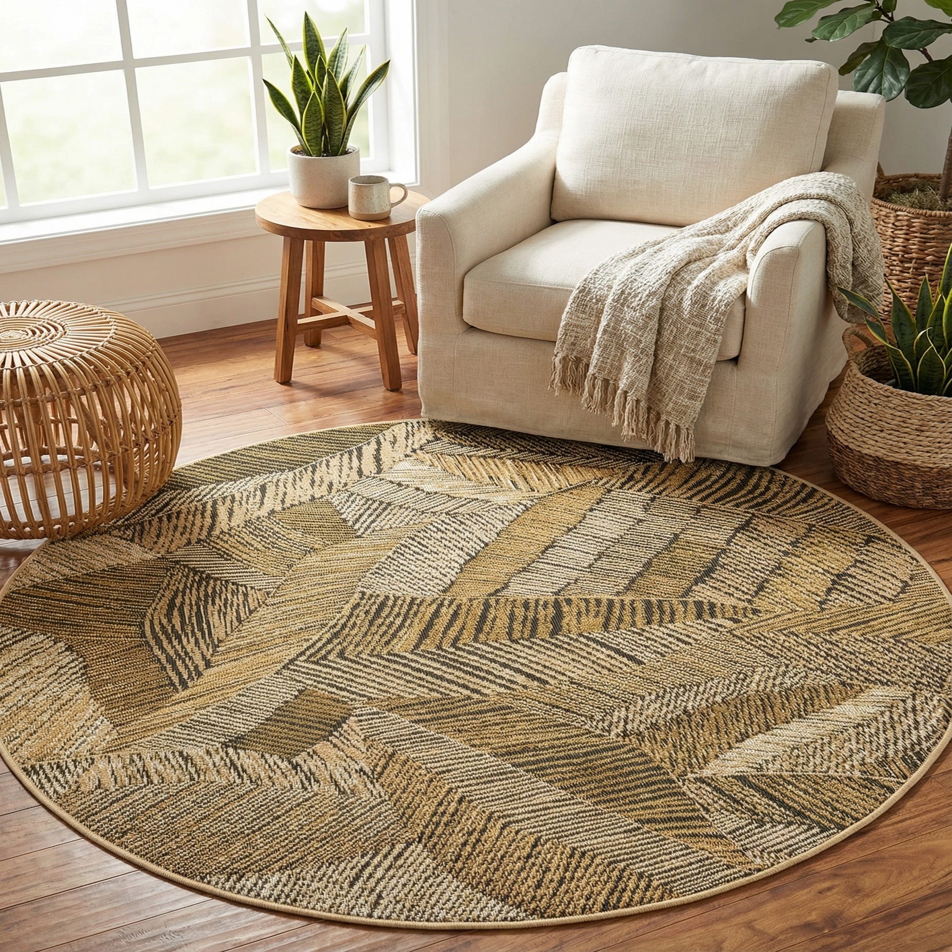 Detail image of 4' x 4'  Washable Botanical Indoor / Outdoor Round Rug