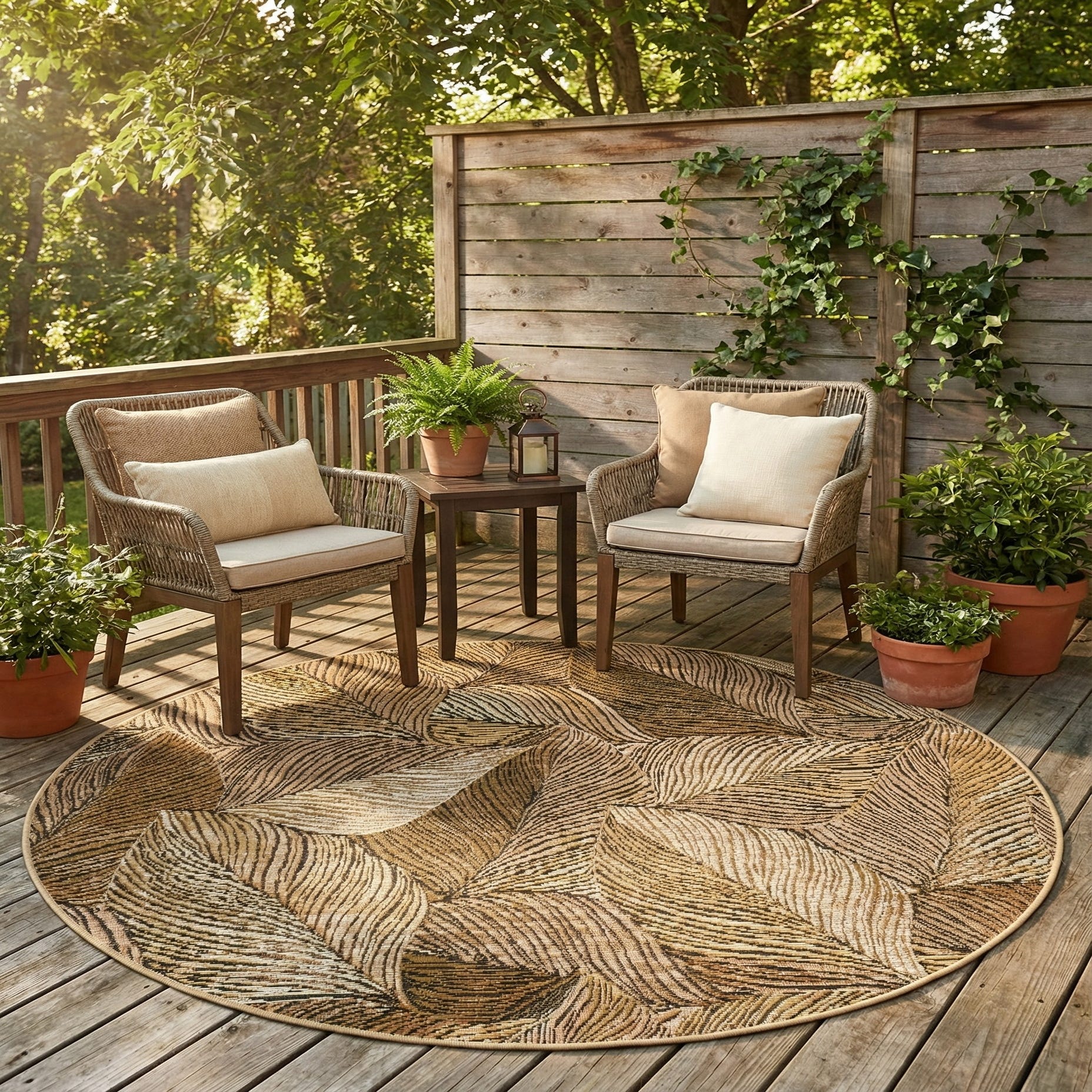 Detail image of 4' x 4'  Washable Botanical Indoor / Outdoor Round Rug