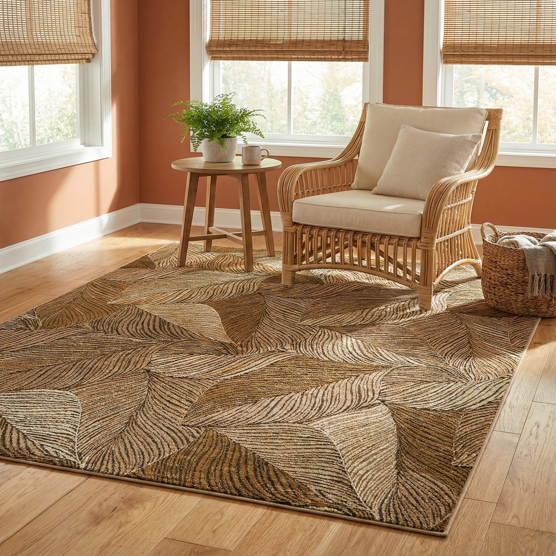 5' 3 x 7' Washable Botanical Indoor / Outdoor Rug