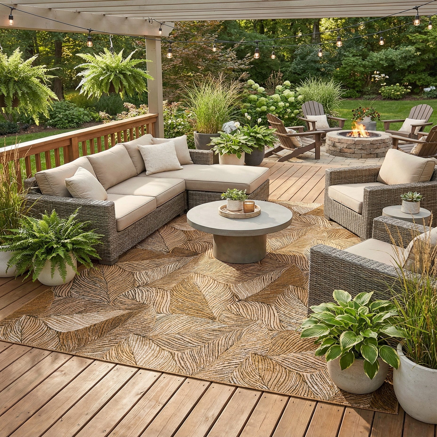 Primary image 9' x 12'  Washable Botanical Indoor / Outdoor Rug
