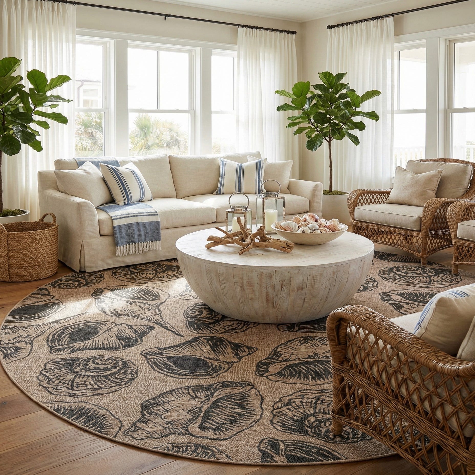 12' x 12' Washable Coastal Indoor / Outdoor Round Rug