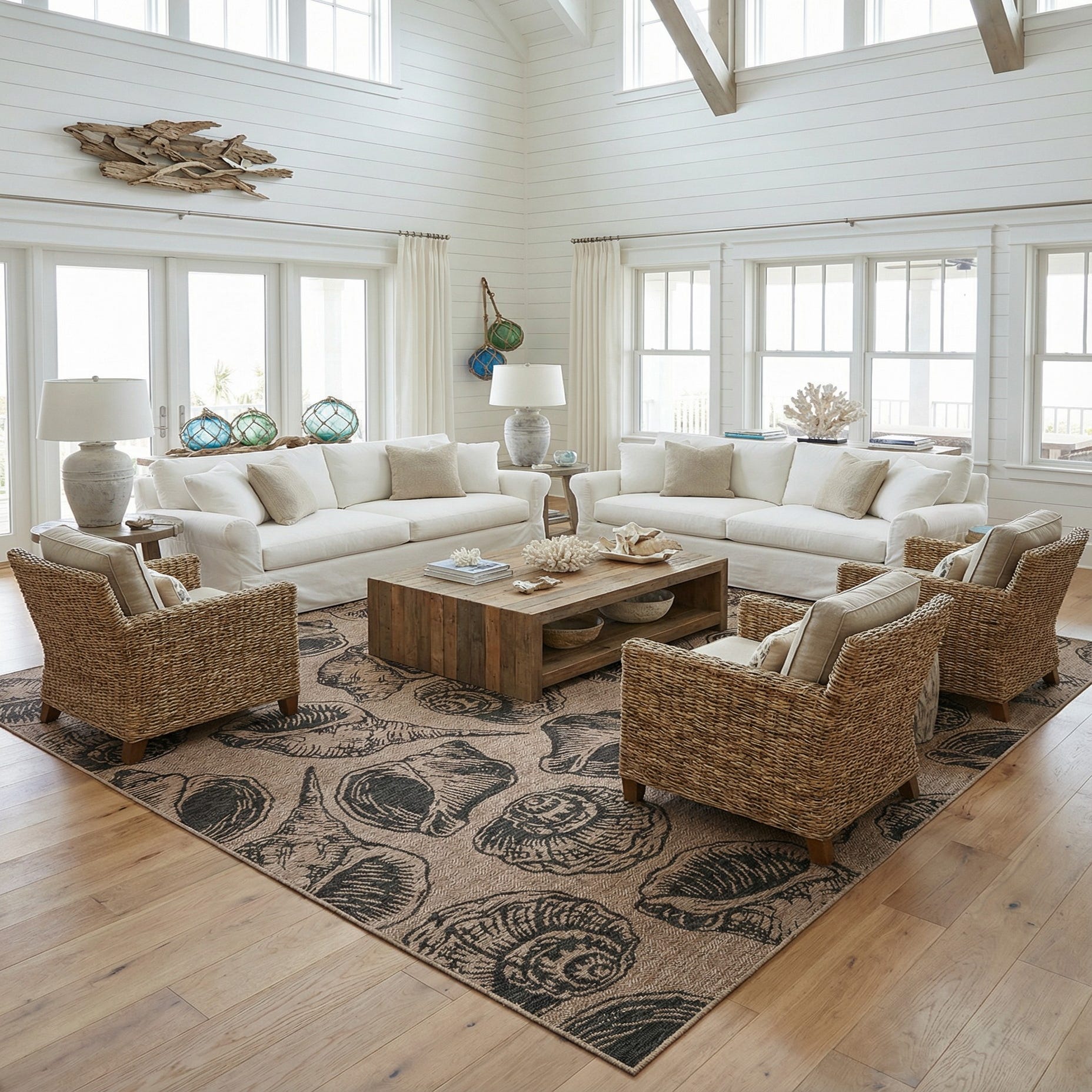 13' x 13' Washable Coastal Indoor / Outdoor Square Rug