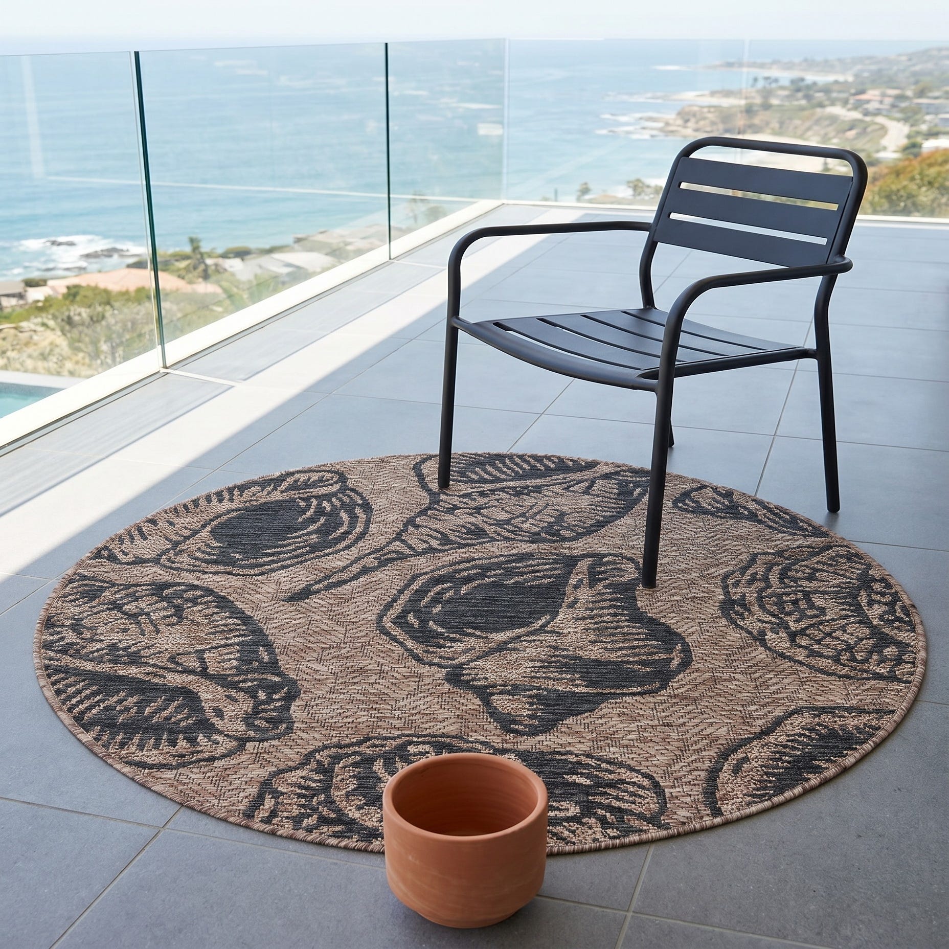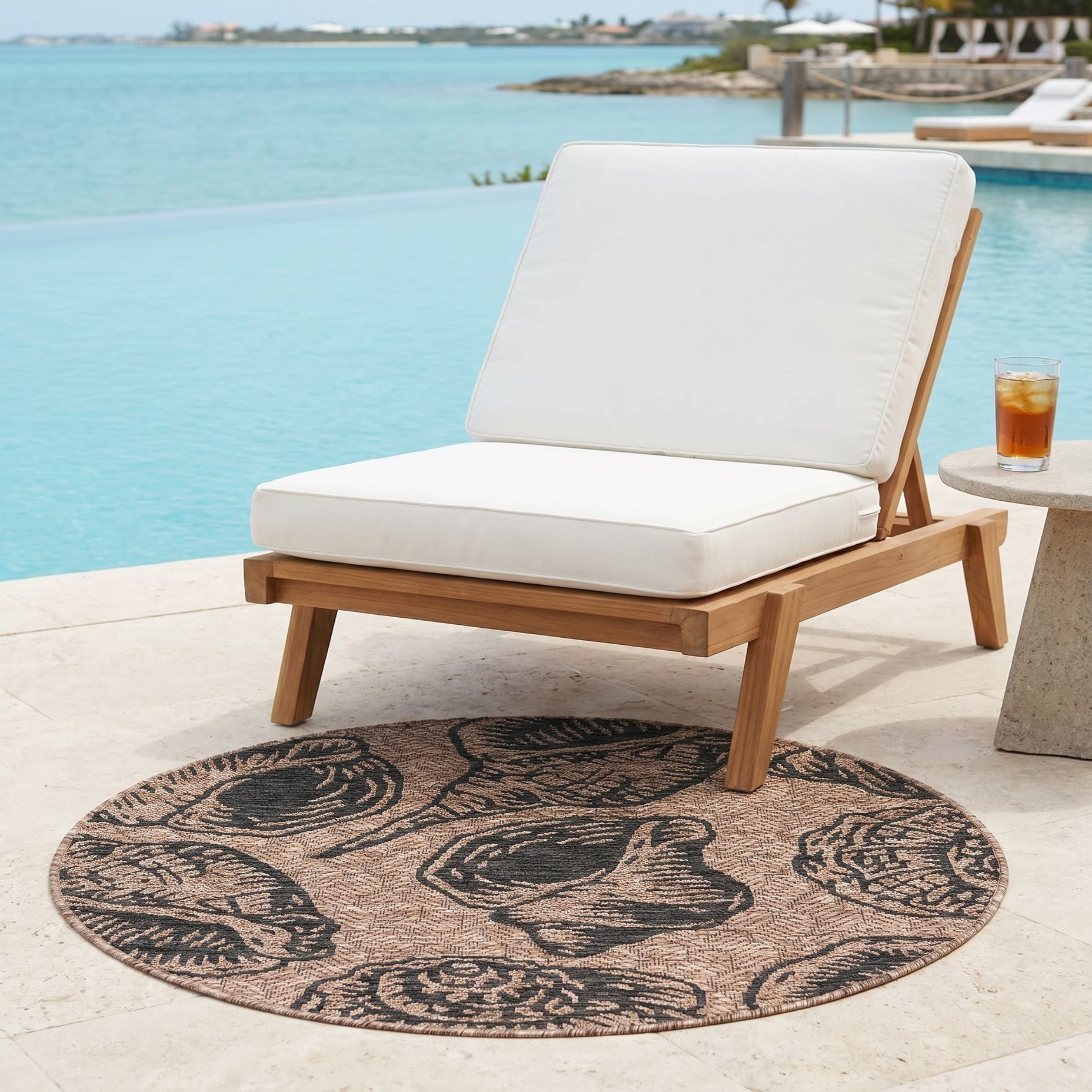 3' x 3' Easy-Clean Coastal Indoor / Outdoor Round Rug