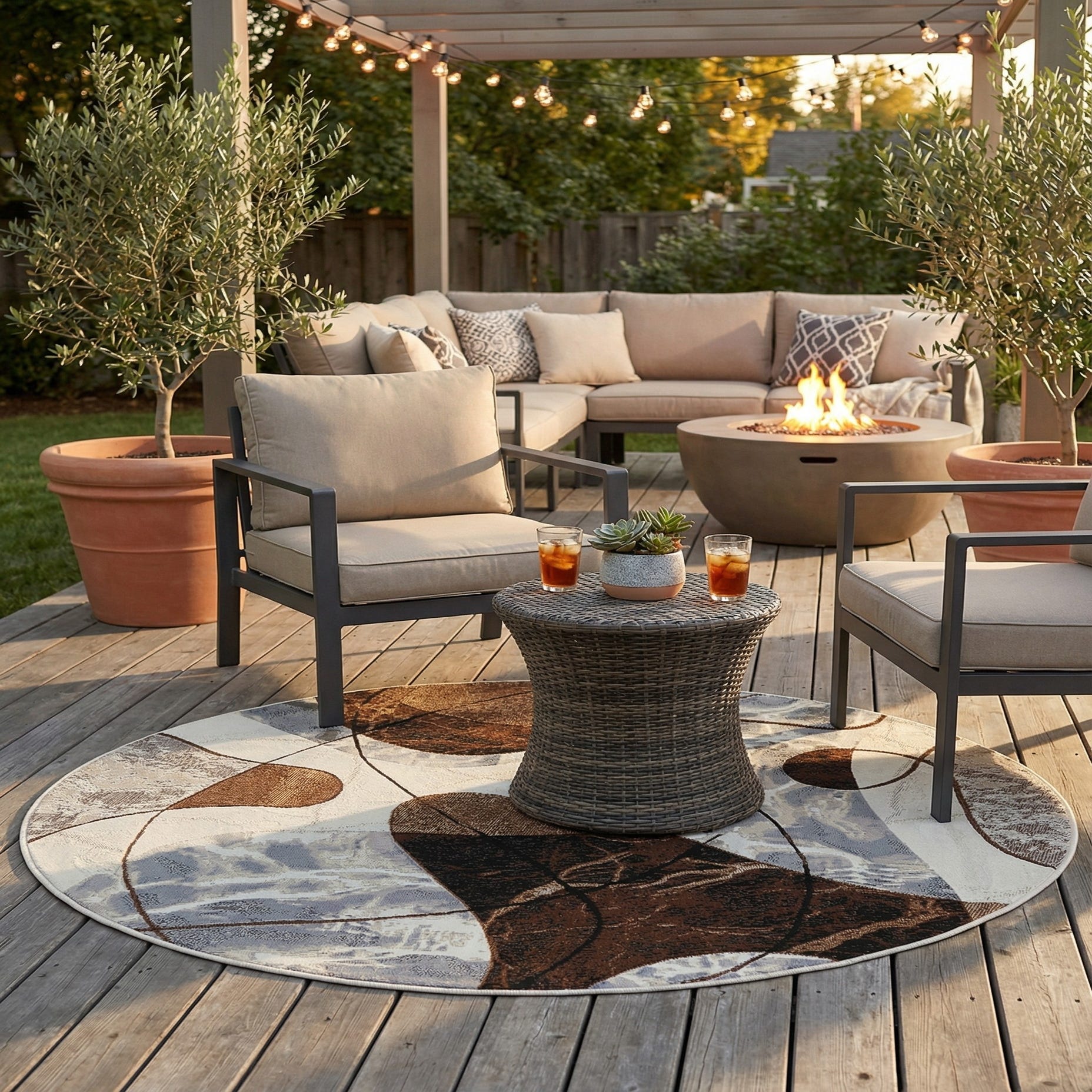 5' x 5' Washable Modern Indoor / Outdoor Round Rug