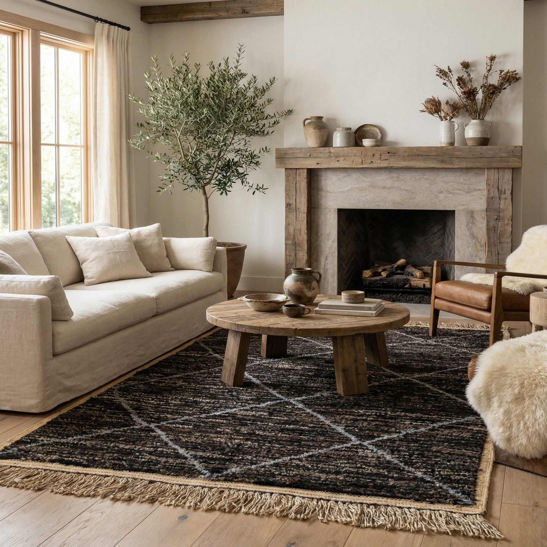 Primary color is Brown Gray. Colors in this rug include: Brown Gray, Beige, Black.
