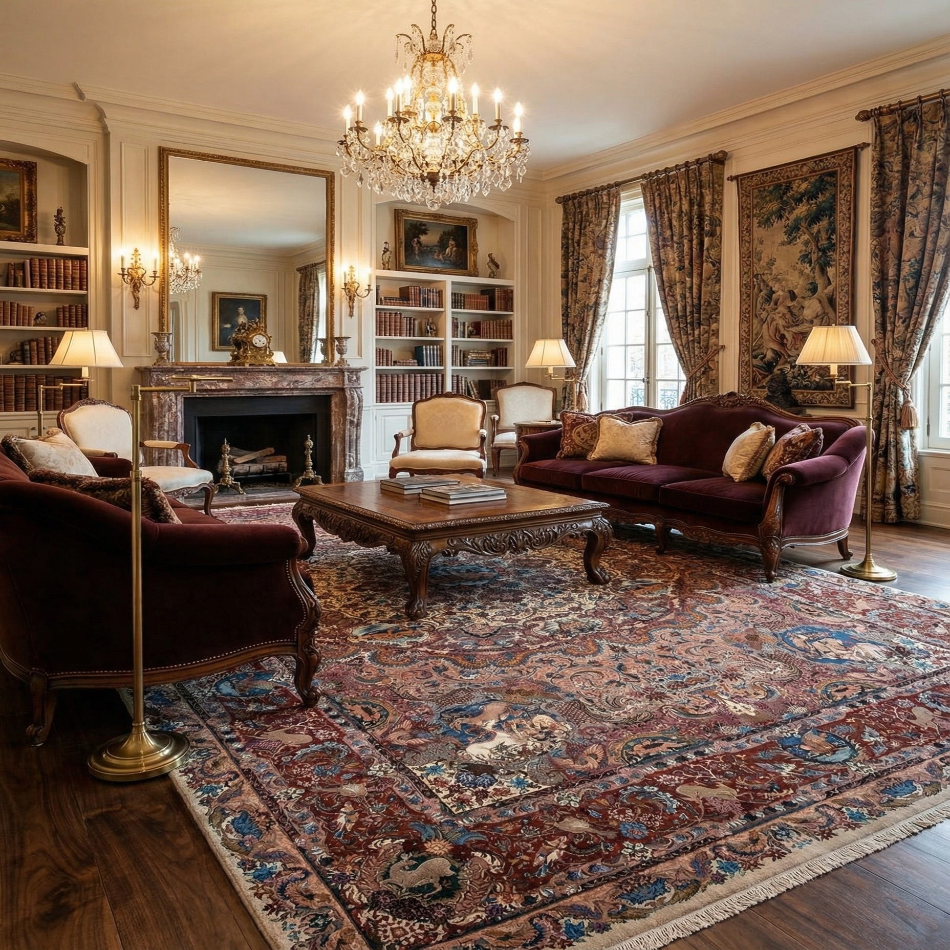 Primary color is Brown. Colors in this rug include: Brown, Multicolor.