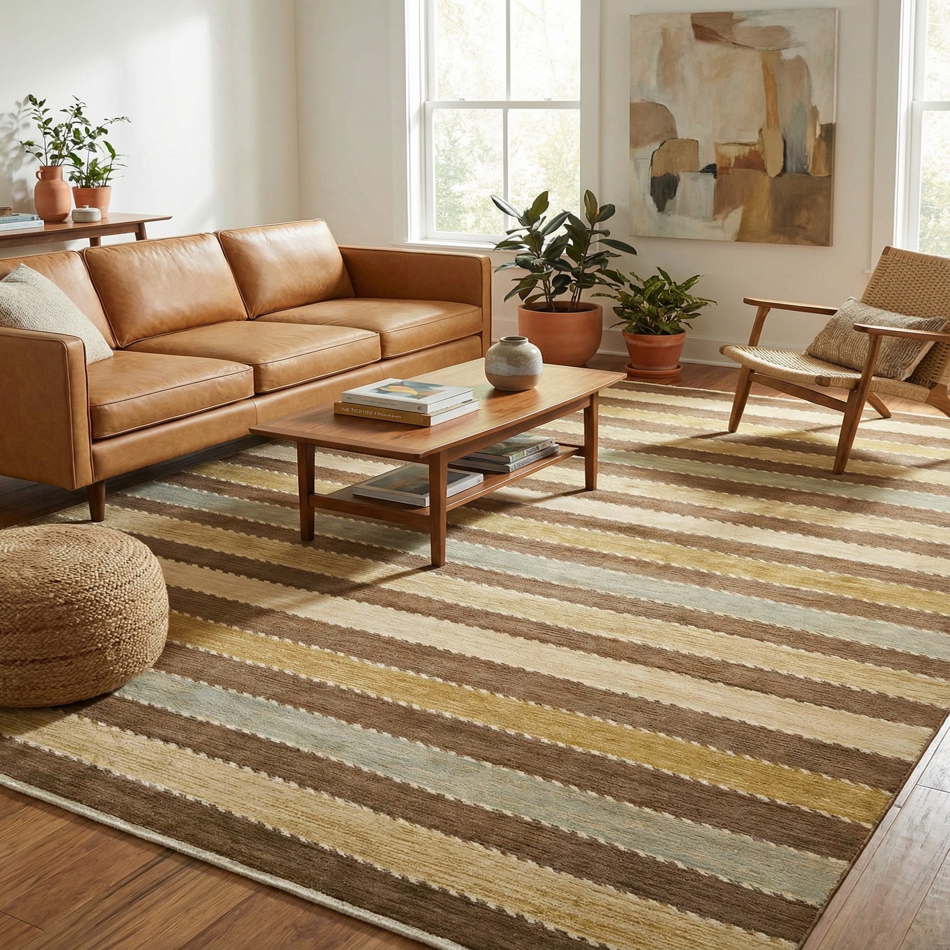 Primary color is Brown. Colors in this rug include: Brown, Beige, Cream, Light Green.