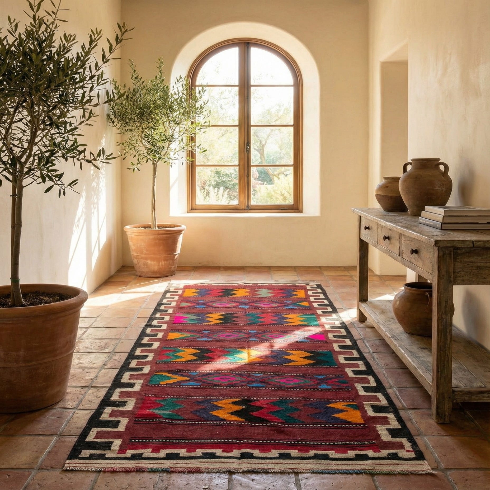 4' 4 x 9' 7 Hand Woven Kilim Afghan Wool Runner Rug