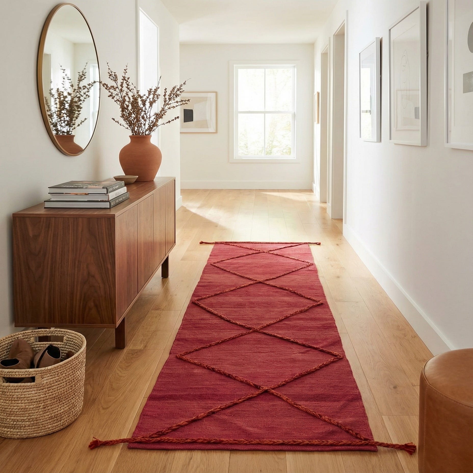 Primary color is Burgundy. Colors in this rug include: Burgundy, Terracotta.