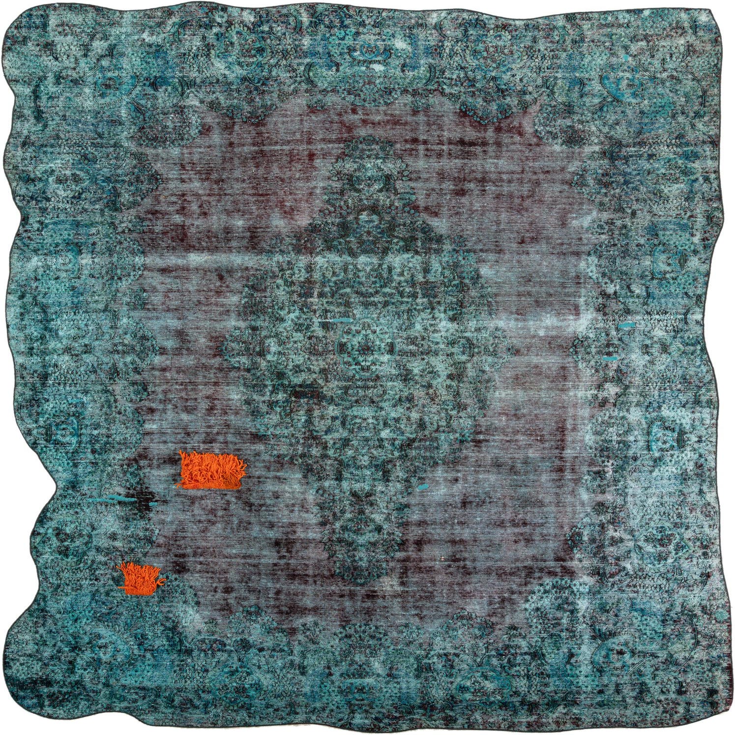 This Persian Ultra Vintage rug is an antique Persian Rug that has been washed, over-dyed, and then shaved down to a low pile. Look at the detail pictures to fully appreciate the uniqueness of this piece.