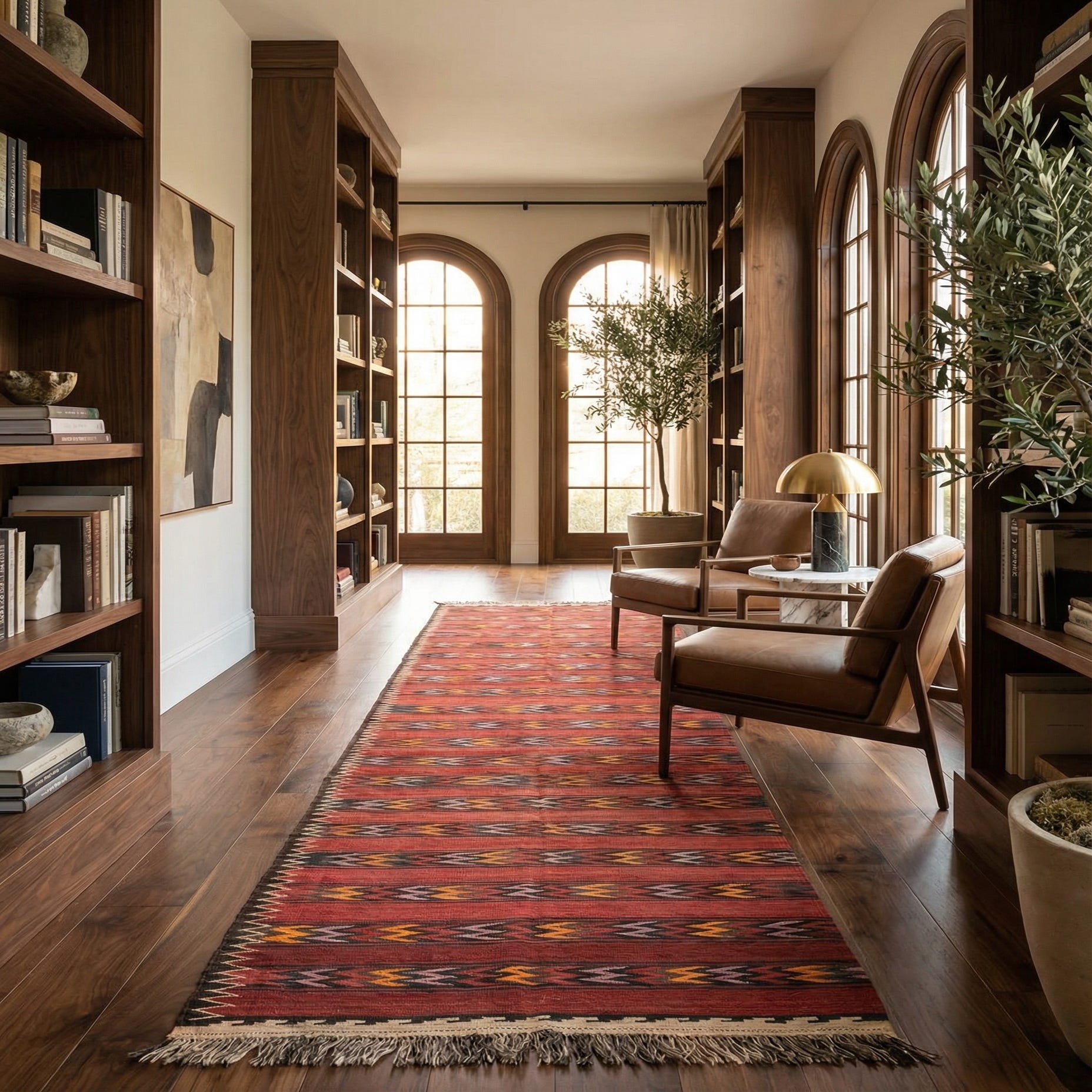 Detail image of 4' 3 x 15' 2  Hand Woven Kilim Fars Wool Runner Rug
