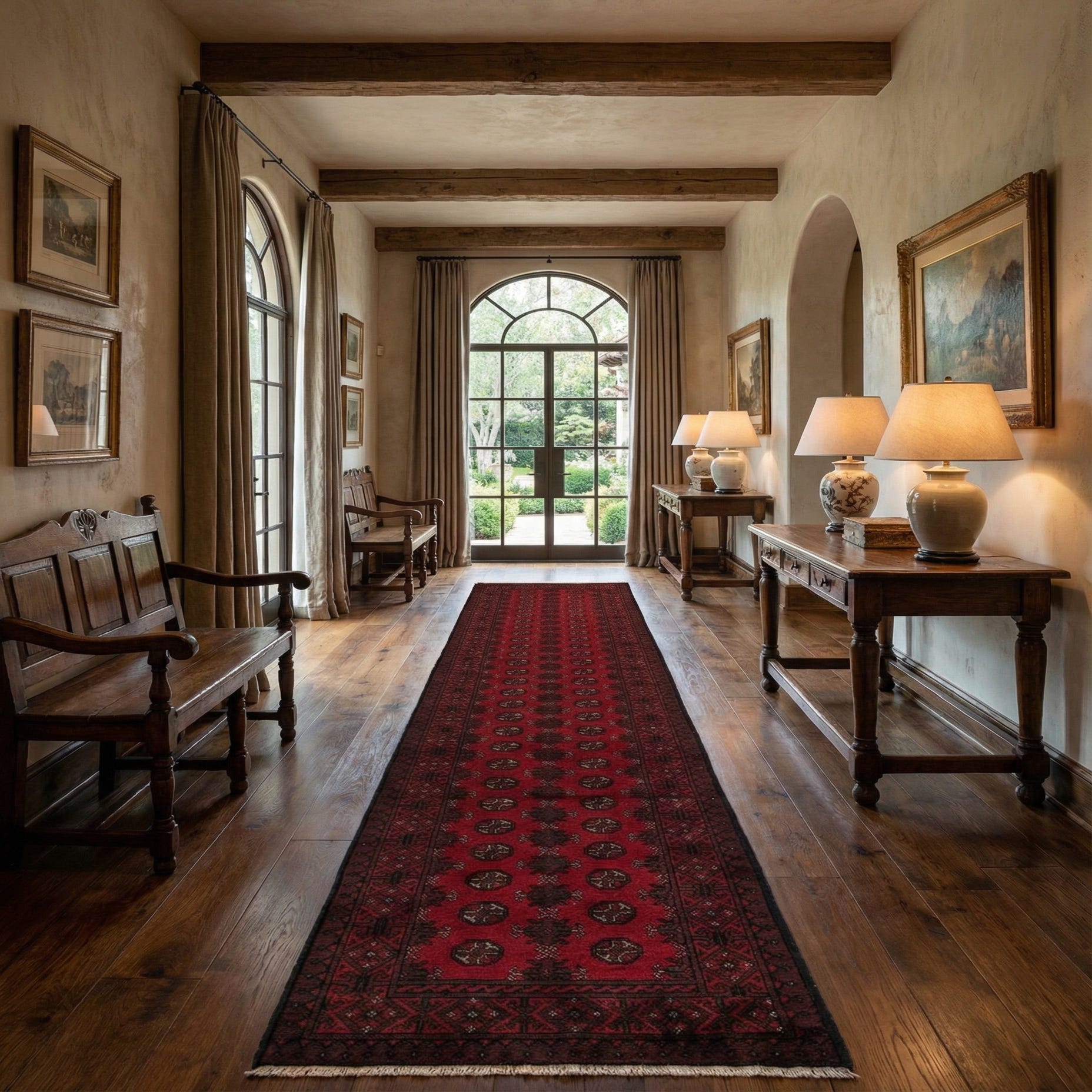 Detail image of 2' 8 x 15' 9  Hand Knotted Afghan Akhche Wool Runner Rug