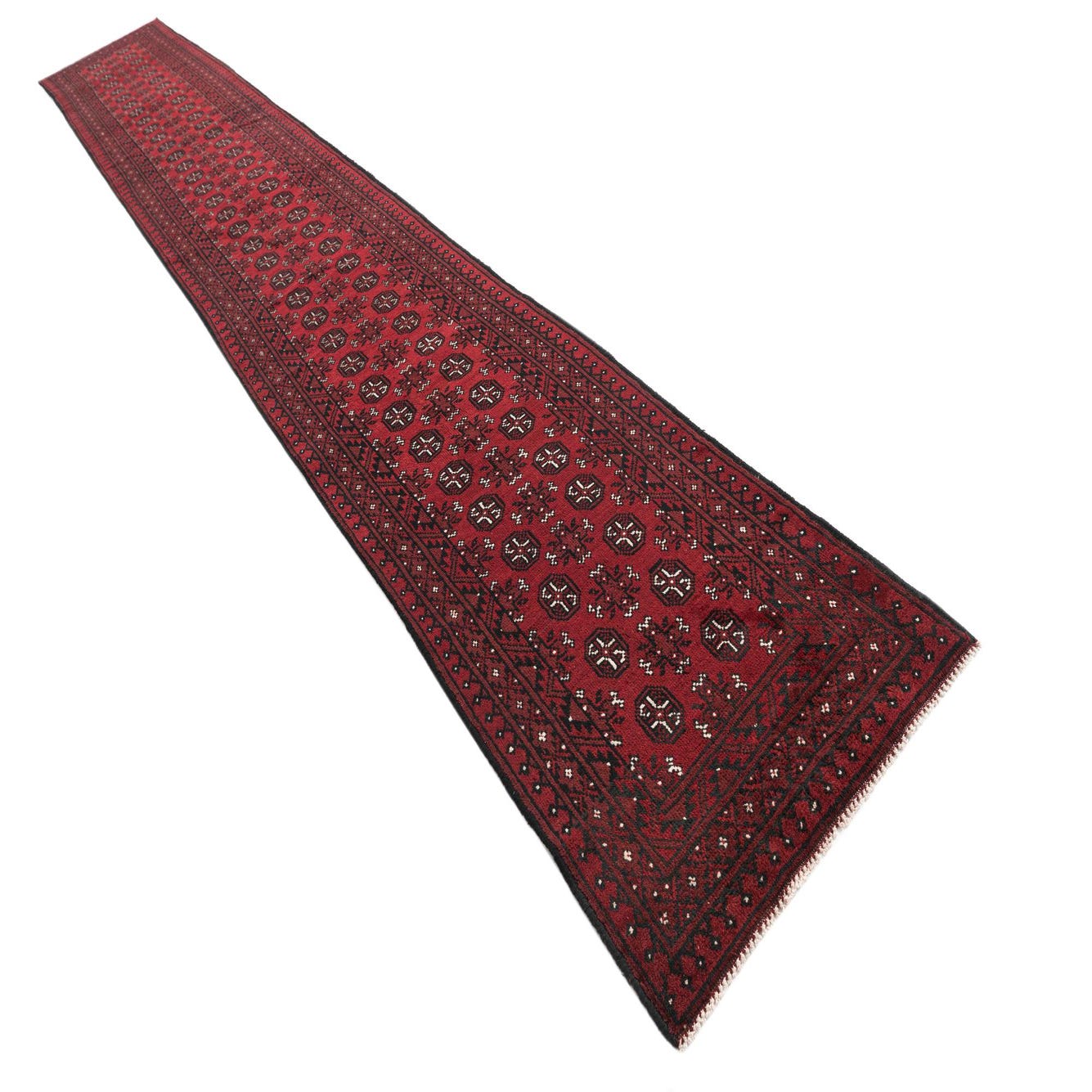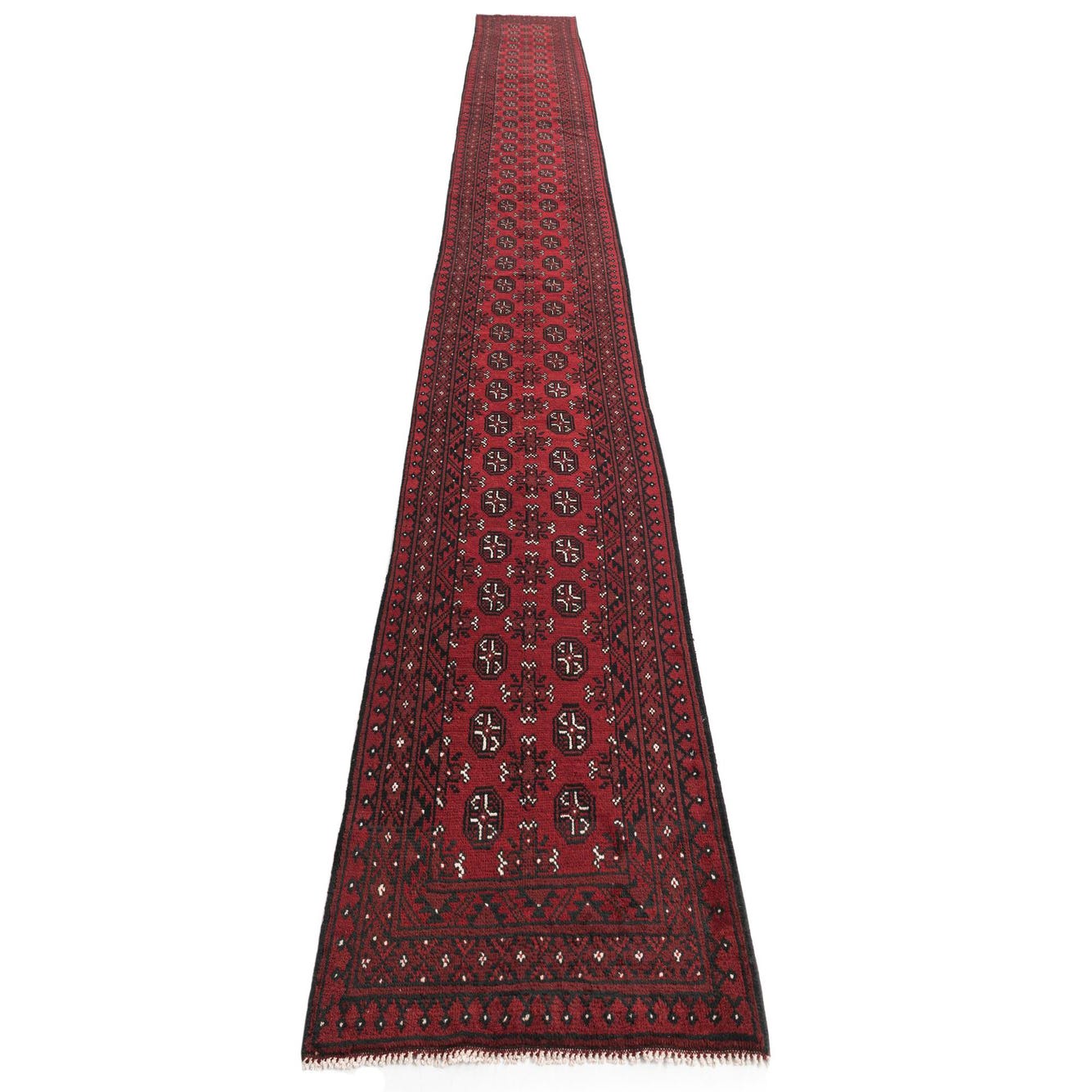 2' 8 x 18' 9 Hand Knotted Afghan Akhche Wool Runner Rug