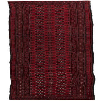 Primary color is Burgundy. Colors in this rug include: Burgundy, Black, Ivory, Maroon.