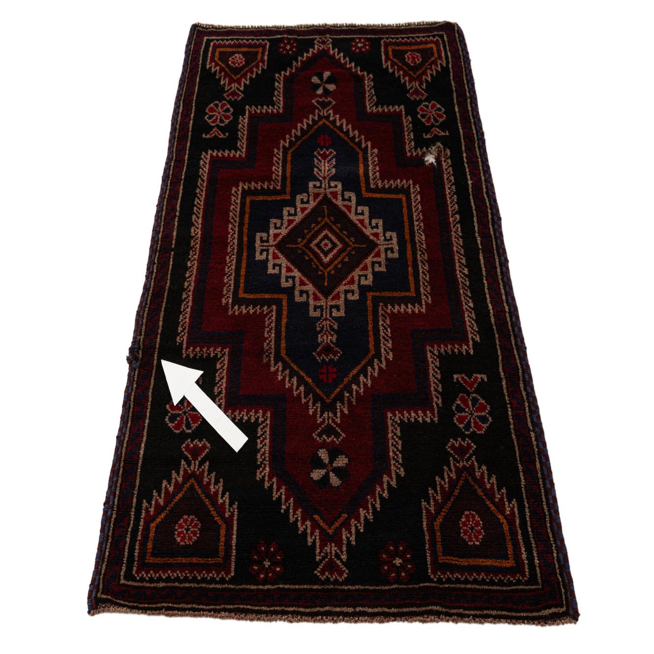 In Very Good condition, with Hole, Low Pile Spots, Small Spot Damage. Further details can be seen in the pictures