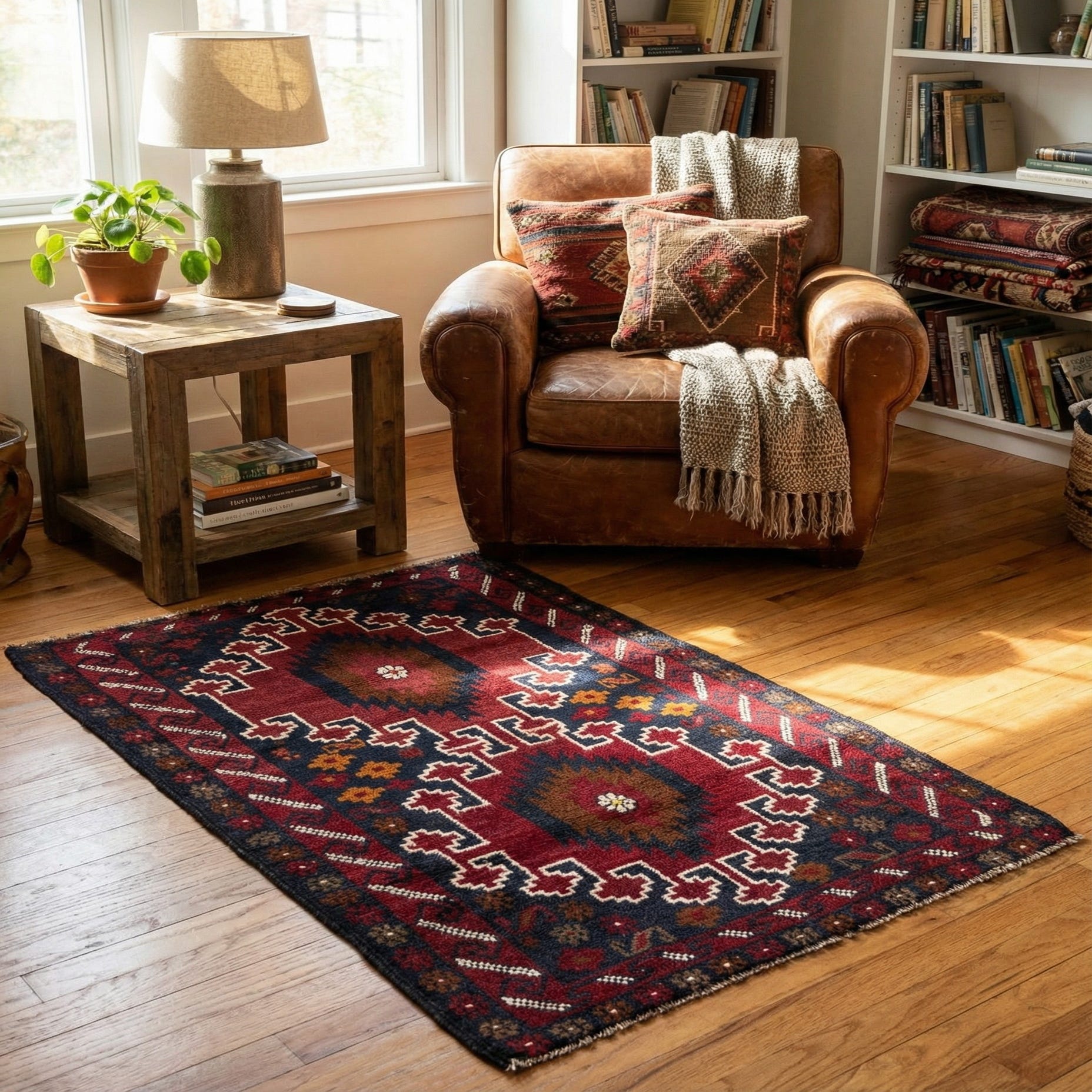 Primary image 2' 10 x 4' 7  Hand Knotted Balouch Persian Wool Rug
