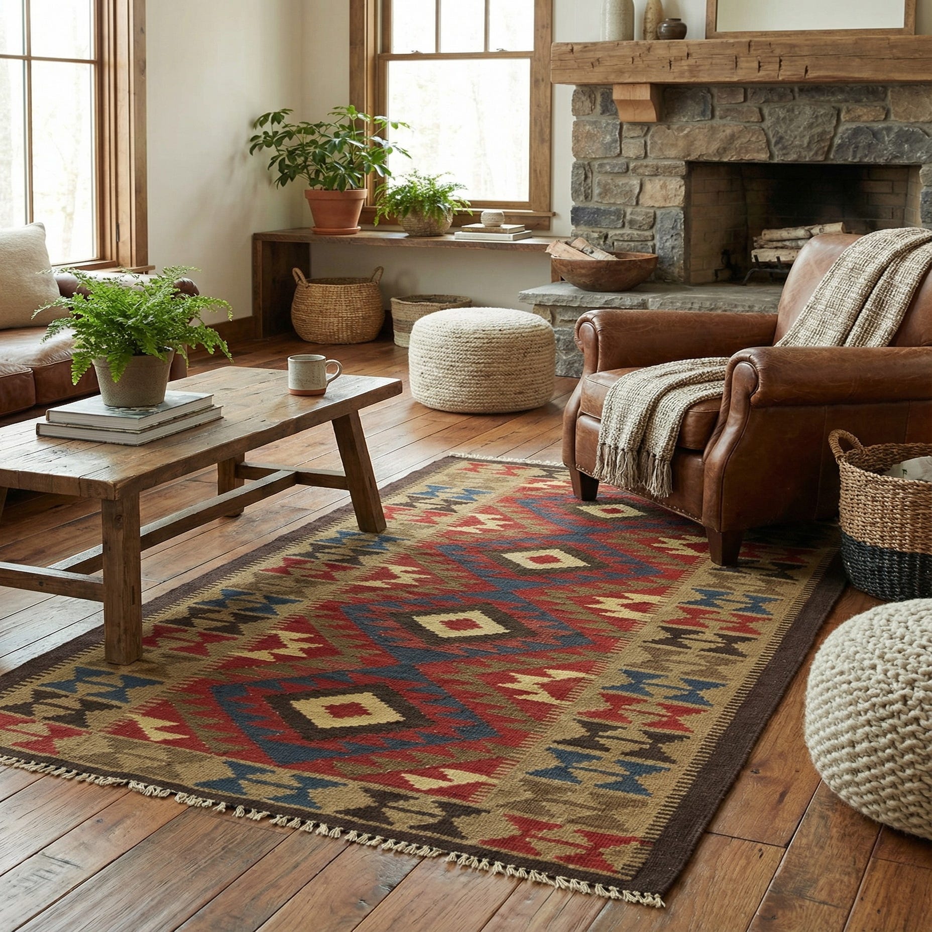3' 6 x 6' 4 Hand Woven Kilim Maymana Wool Rug