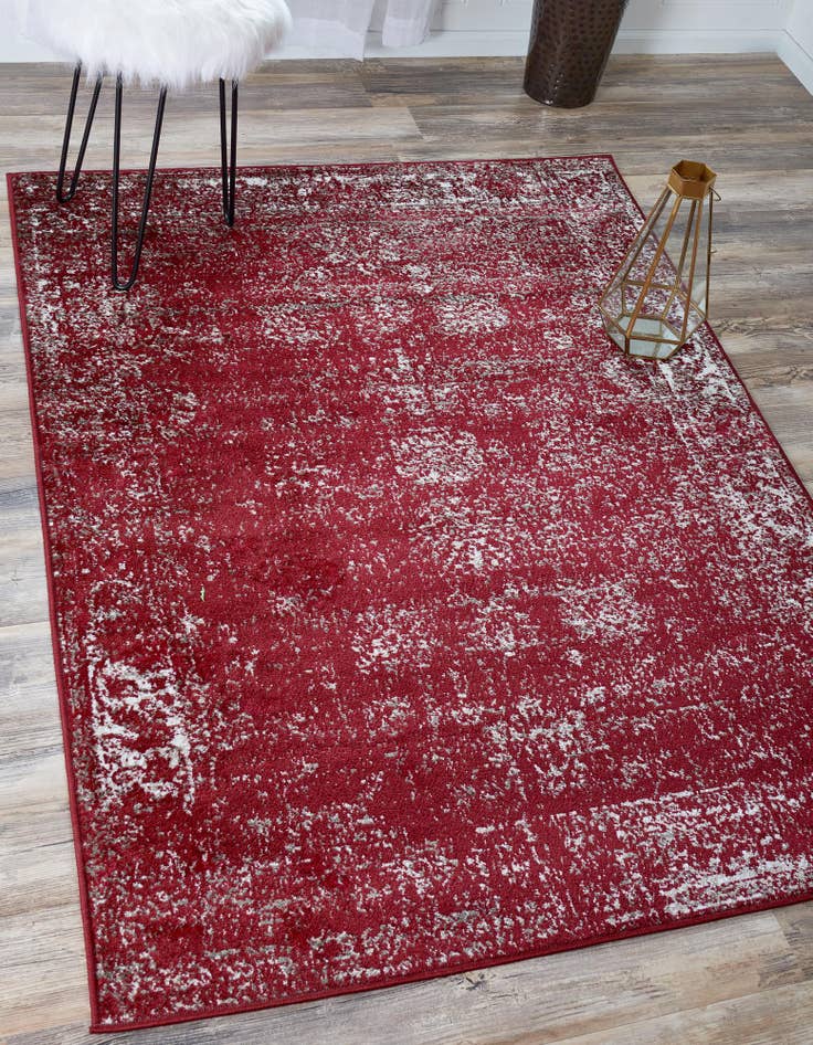 Primary color is Burgundy. Colors in this rug include: Burgundy, Gray, Ivory.
