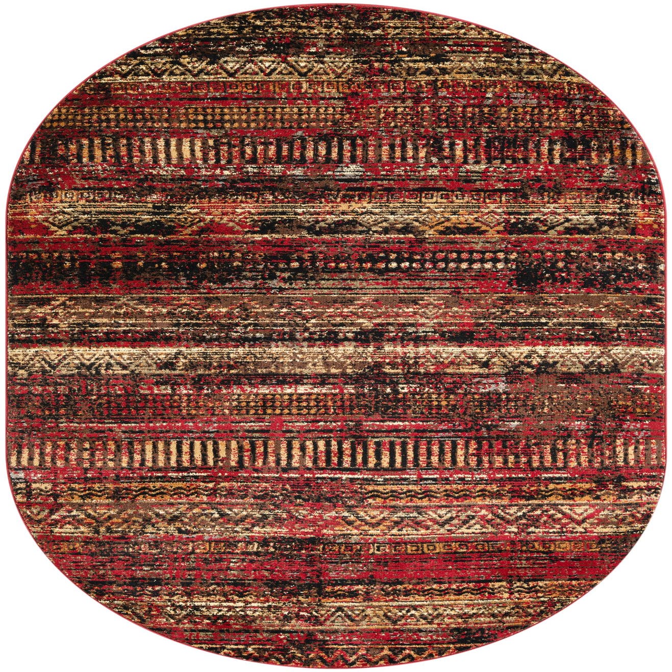 Primary color is Burgundy. Colors in this rug include: Burgundy, Beige, Black, Brown, Light Brown, Maroon.