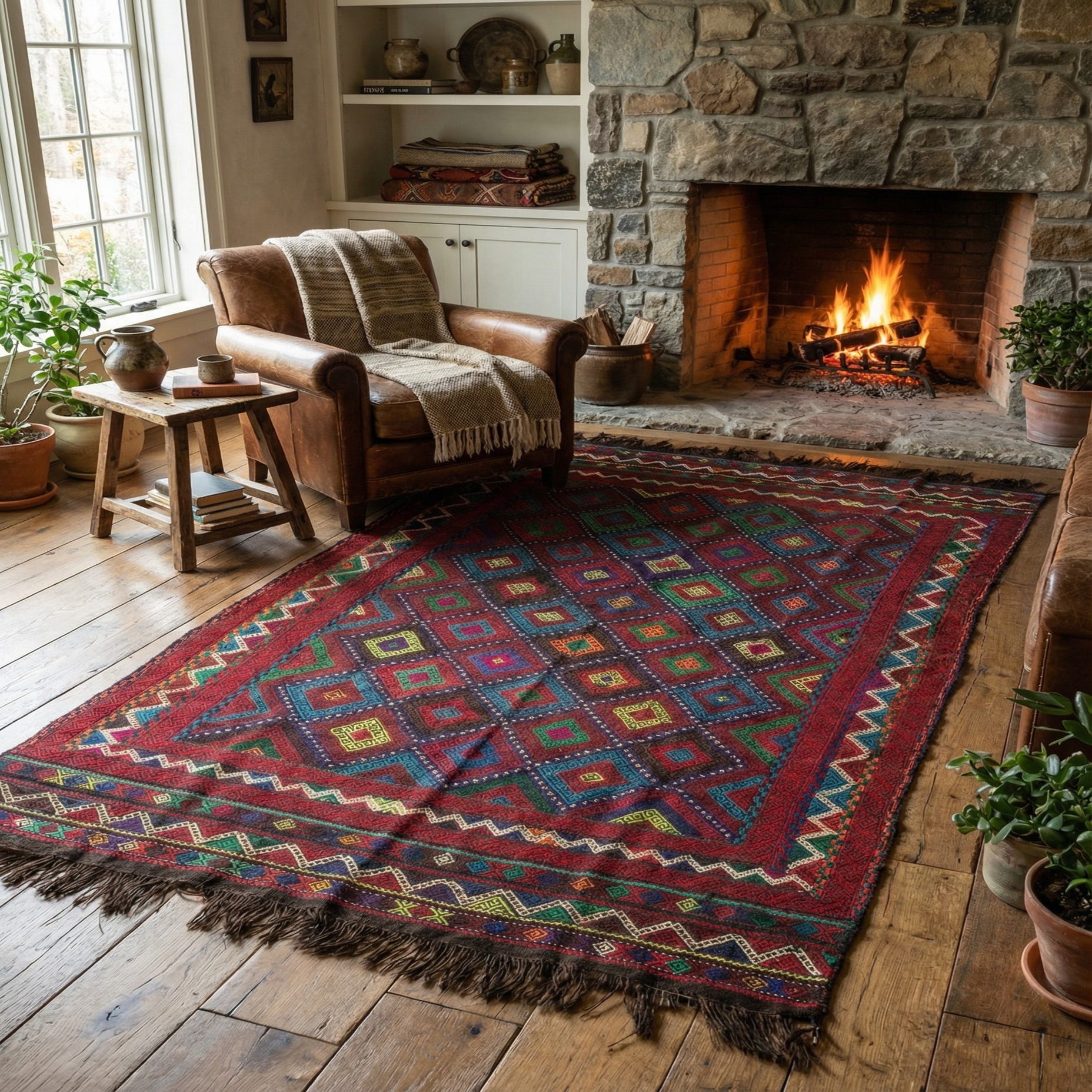 4' 8 x 8' 1 Hand Woven Kilim Fars Wool Rug