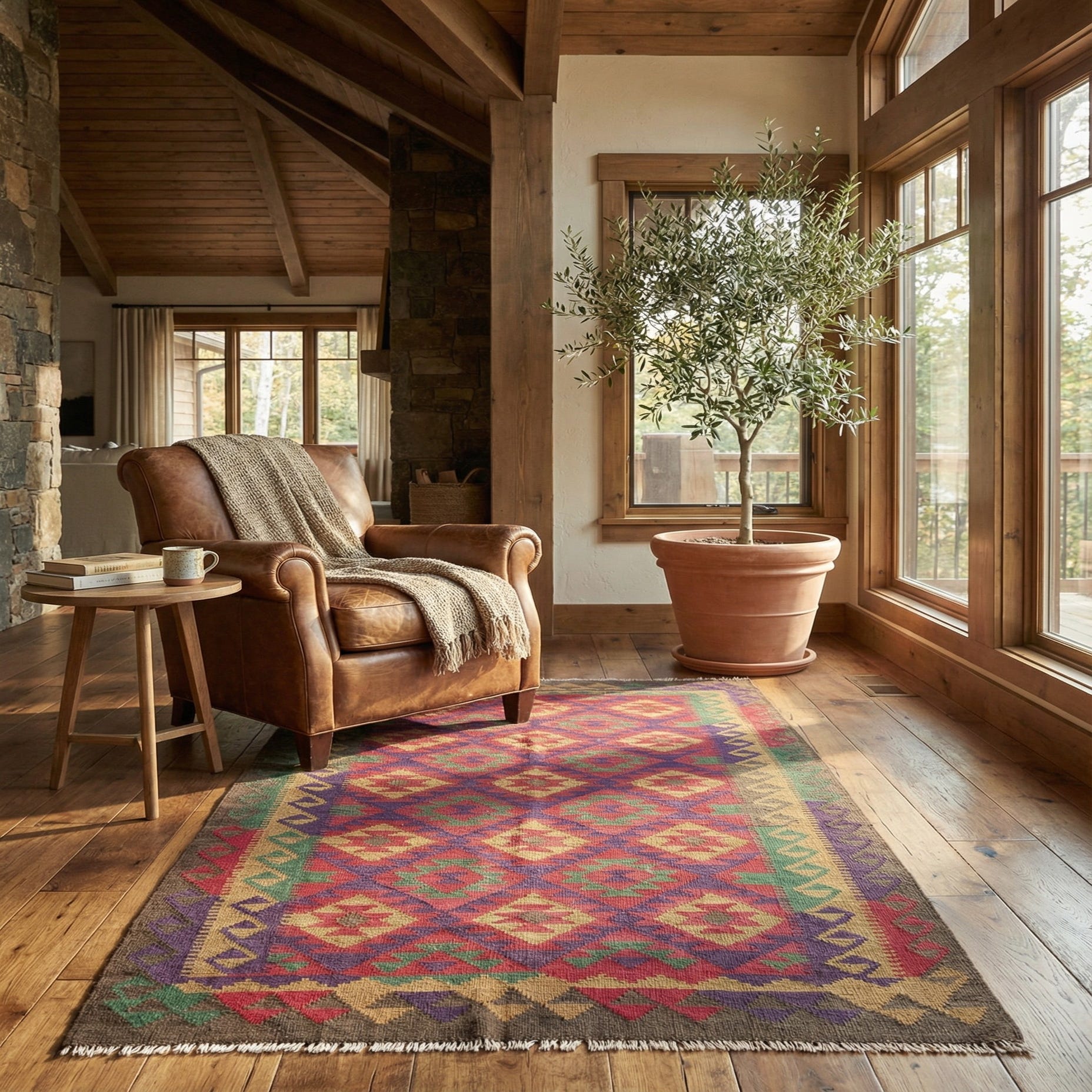 4' 9 x 8' 8 Hand Woven Kilim Maymana Wool Rug