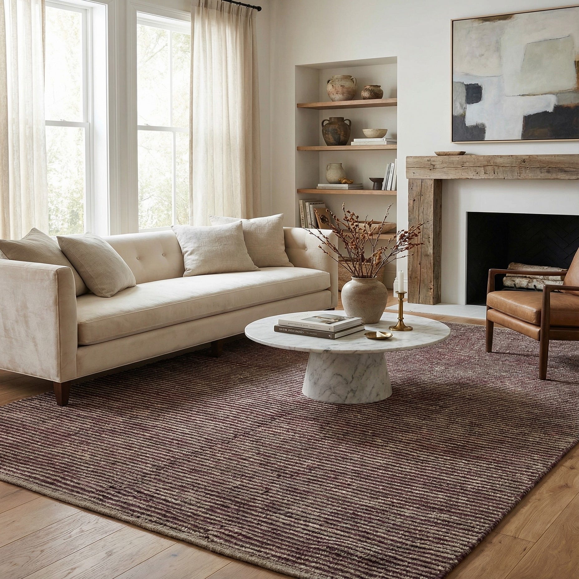 Primary color is Burgundy. Colors in this rug include: Burgundy, Brown.
