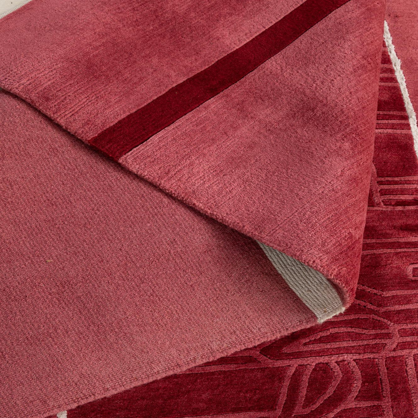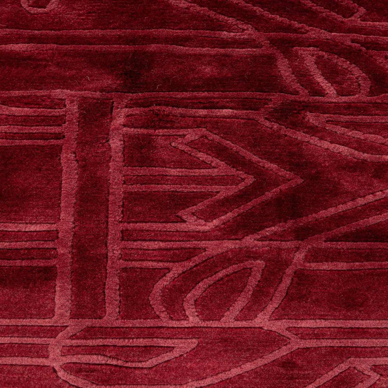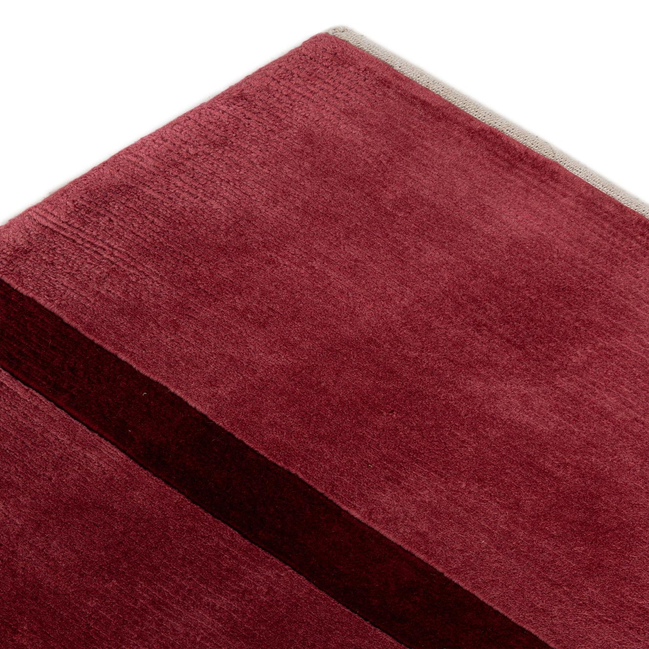 Primary color is Burgundy. Colors in this rug include: Burgundy, Red, Ivory.