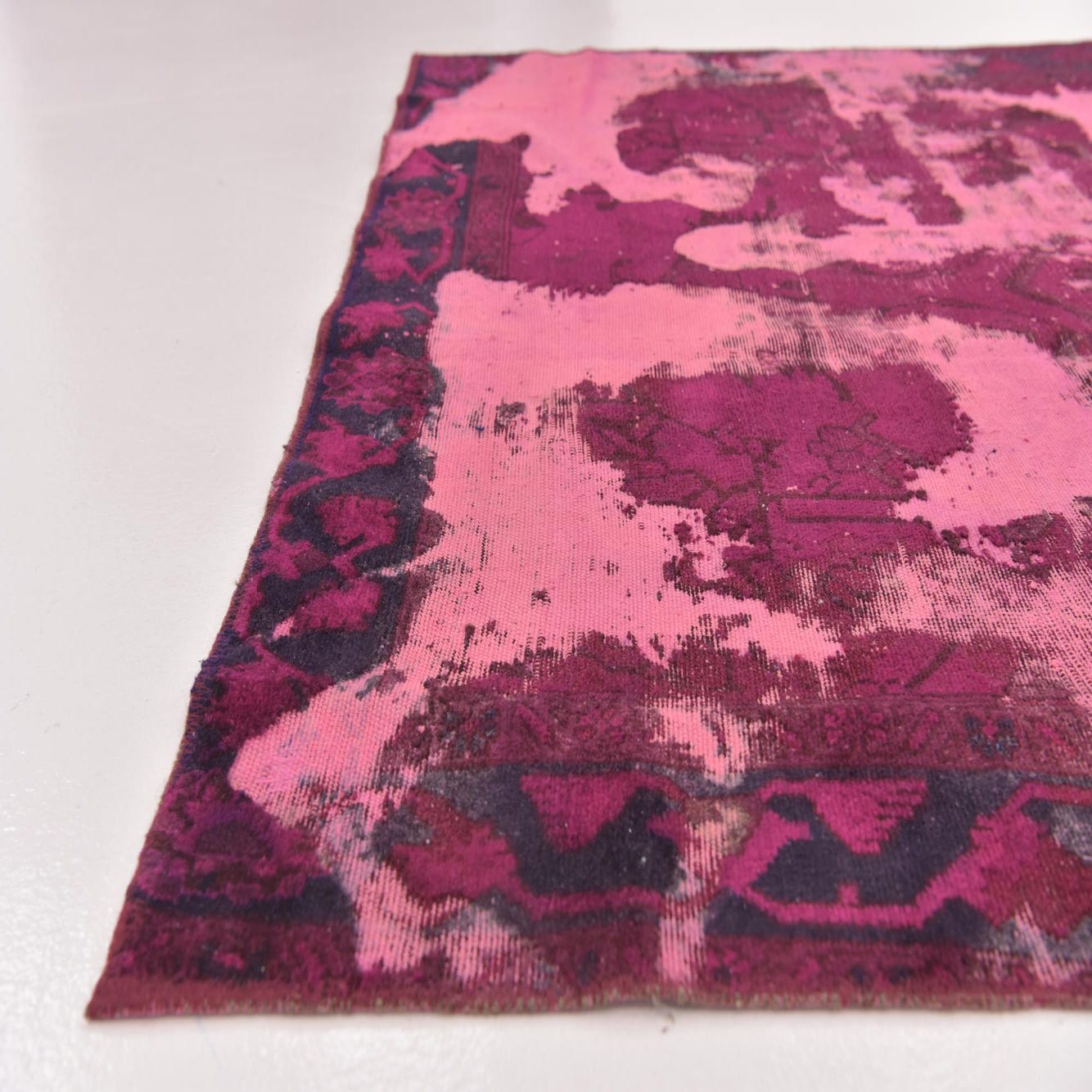 This Persian Ultra Vintage rug is an antique Persian Rug that has been washed, over-dyed, and then shaved down to a low pile. Look at the detail pictures to fully appreciate the uniqueness of this piece.