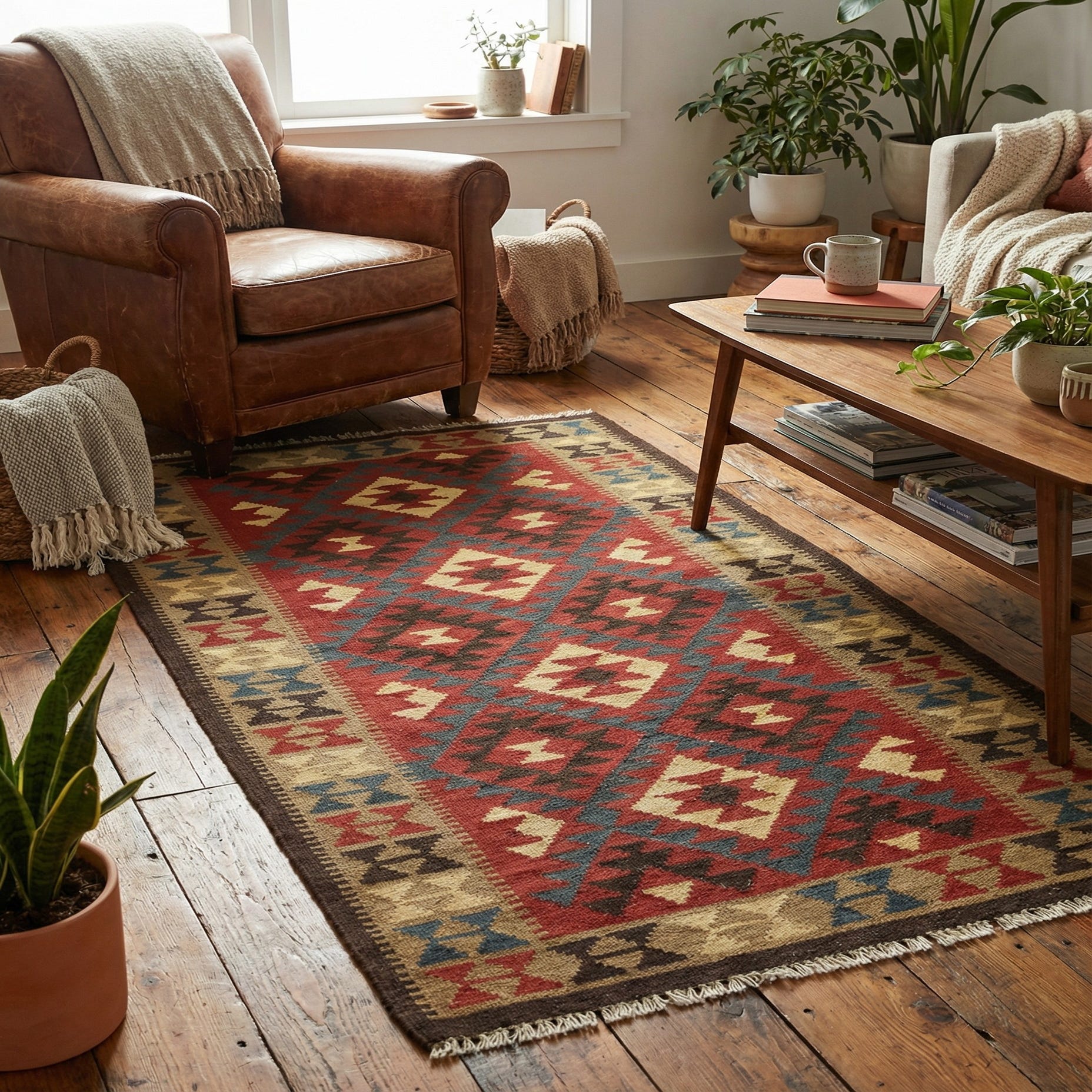 Detail image of 3' 5 x 6' 5  Hand Woven Kilim Maymana Wool Runner Rug