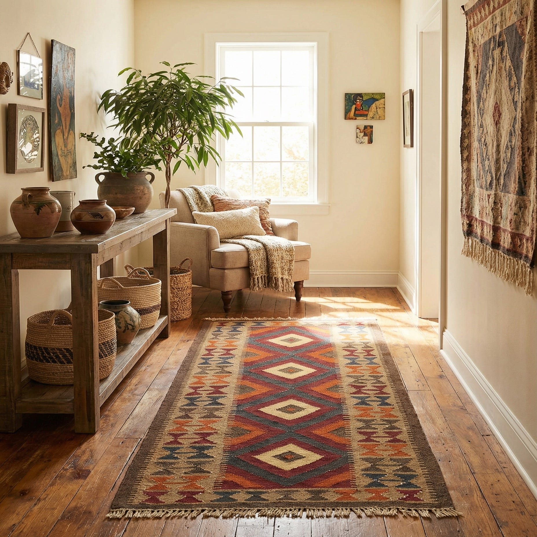 3' 4 x 6' 6 Hand Woven Kilim Maymana Wool Runner Rug