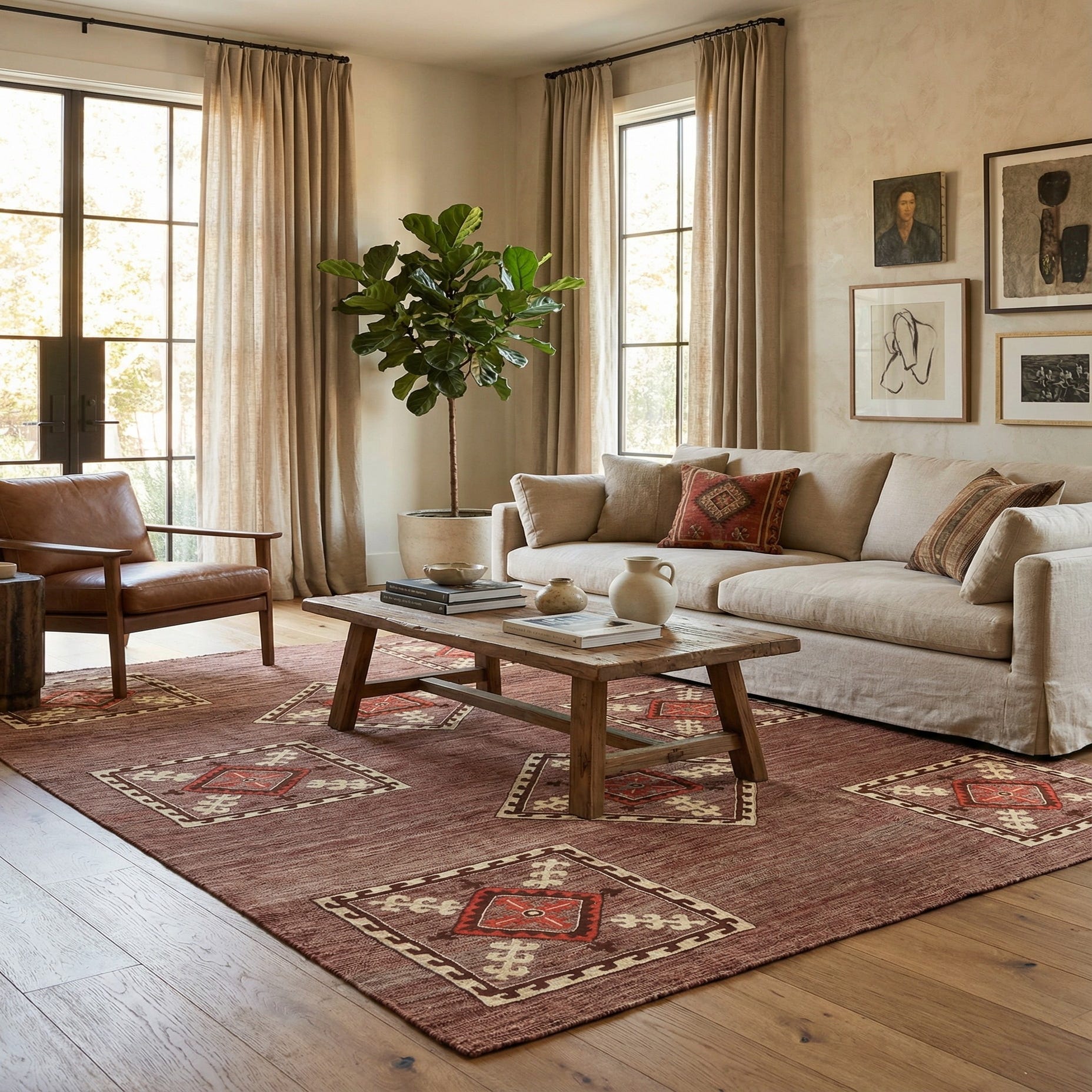 Primary color is Burgundy. Colors in this rug include: Burgundy, Ivory, Red, Maroon.
