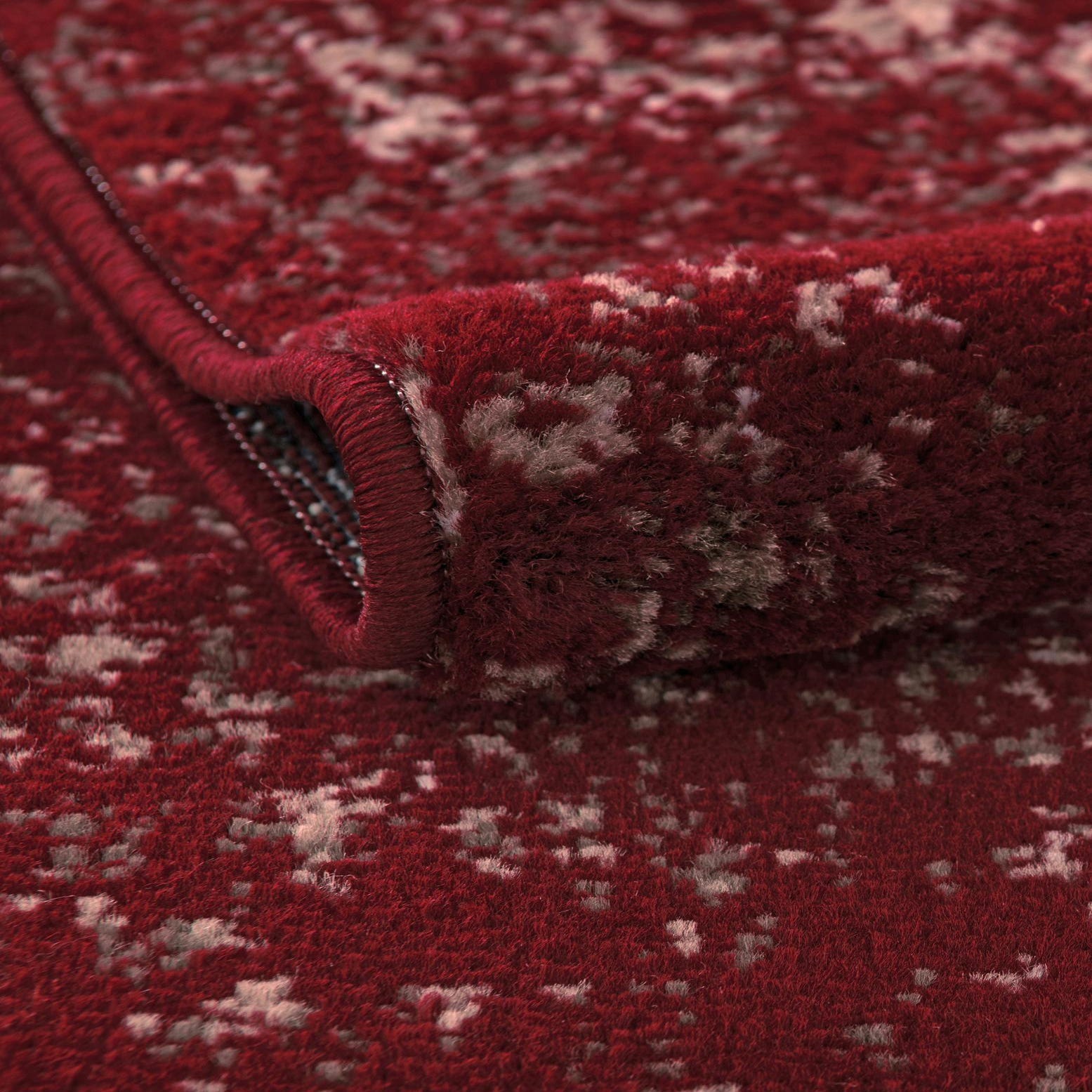 Primary color is Burgundy. Colors in this rug include: Burgundy, Gray, Ivory.