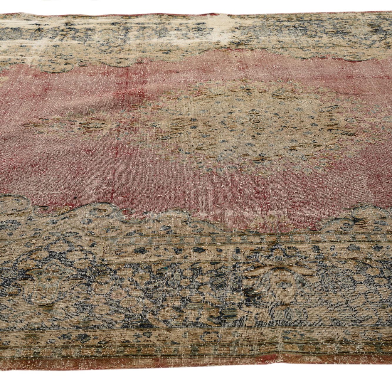 This Persian Ultra Vintage rug is an antique Persian Rug that has been washed, over-dyed, and then shaved down to a low pile. Look at the detail pictures to fully appreciate the uniqueness of this piece.