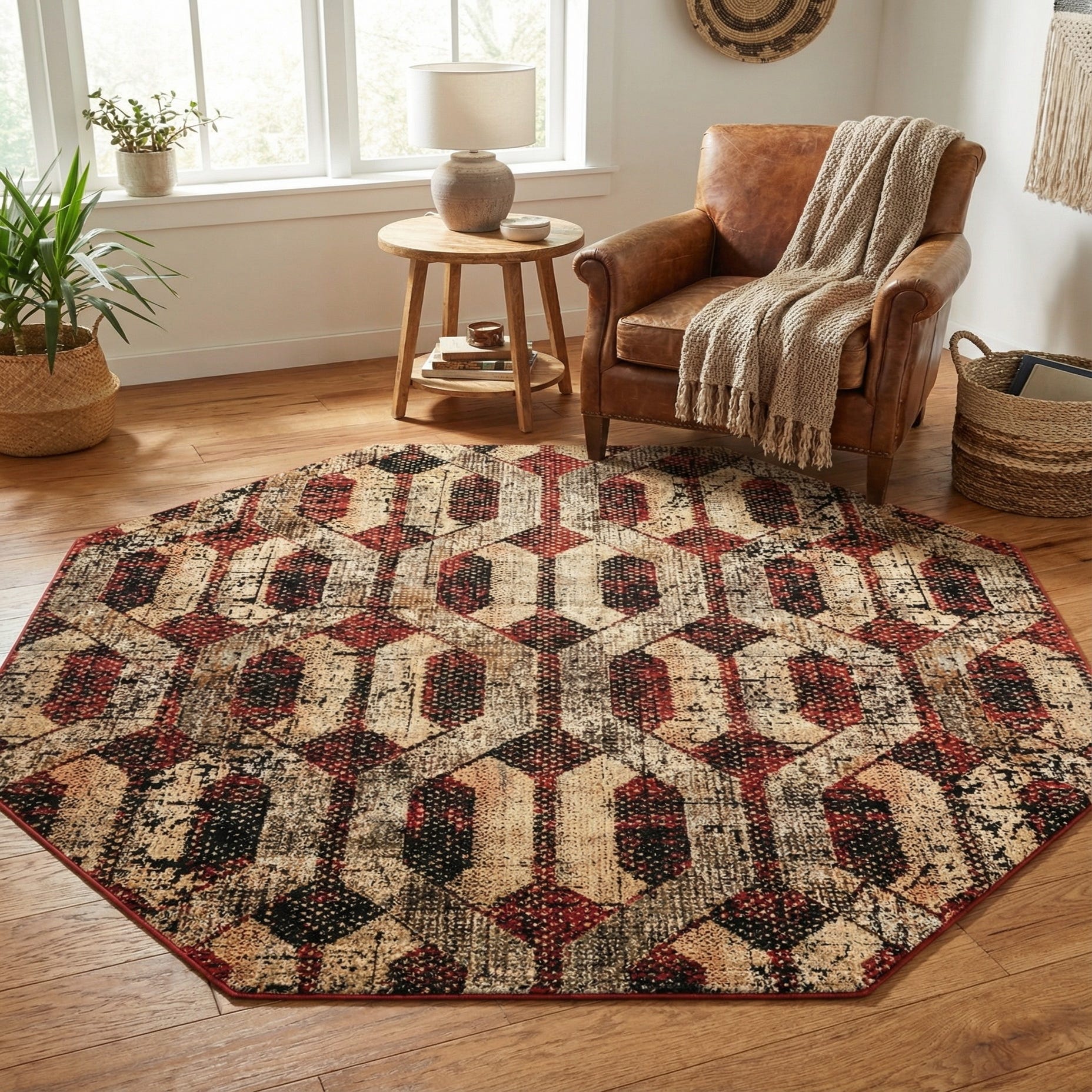 Primary color is Burgundy. Colors in this rug include: Burgundy, Beige, Black, Brown, Gray.