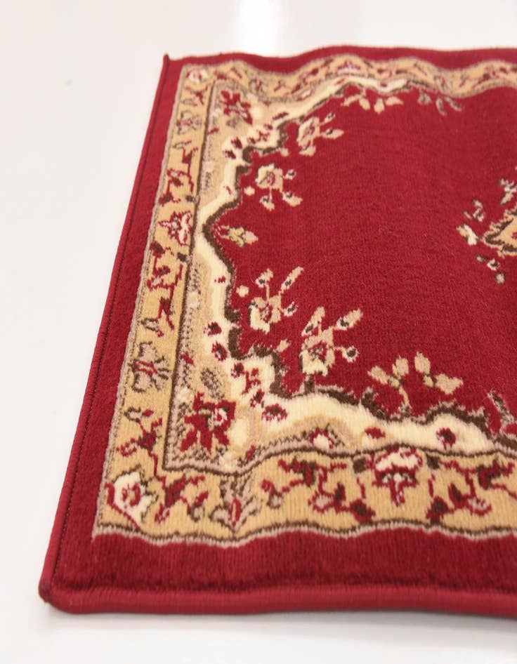 Primary color is Burgundy. Colors in this rug include: Burgundy, Black, Brown, Cream, Red, Tan.