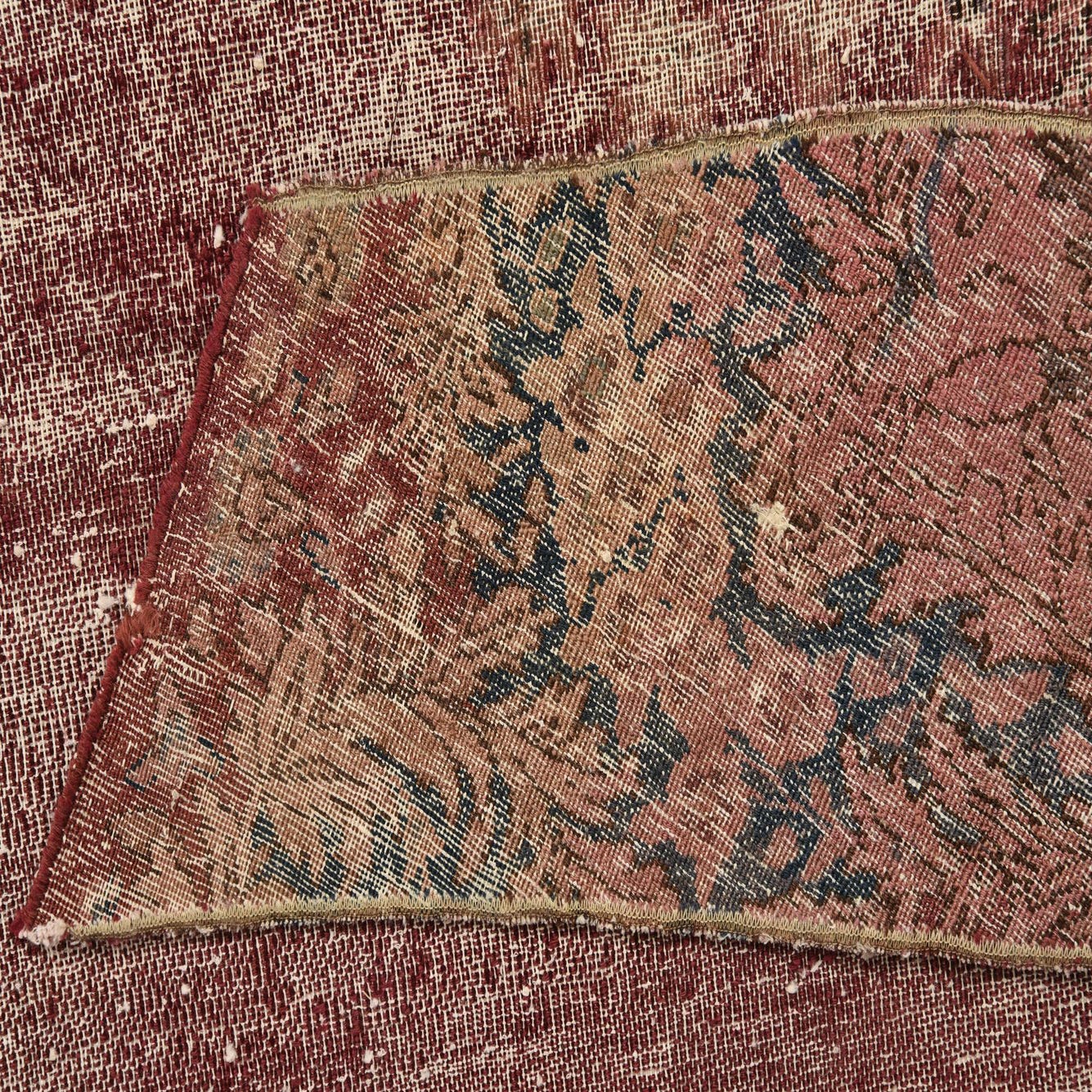 This Persian Ultra Vintage rug is an antique Persian Rug that has been washed, over-dyed, and then shaved down to a low pile. Look at the detail pictures to fully appreciate the uniqueness of this piece.