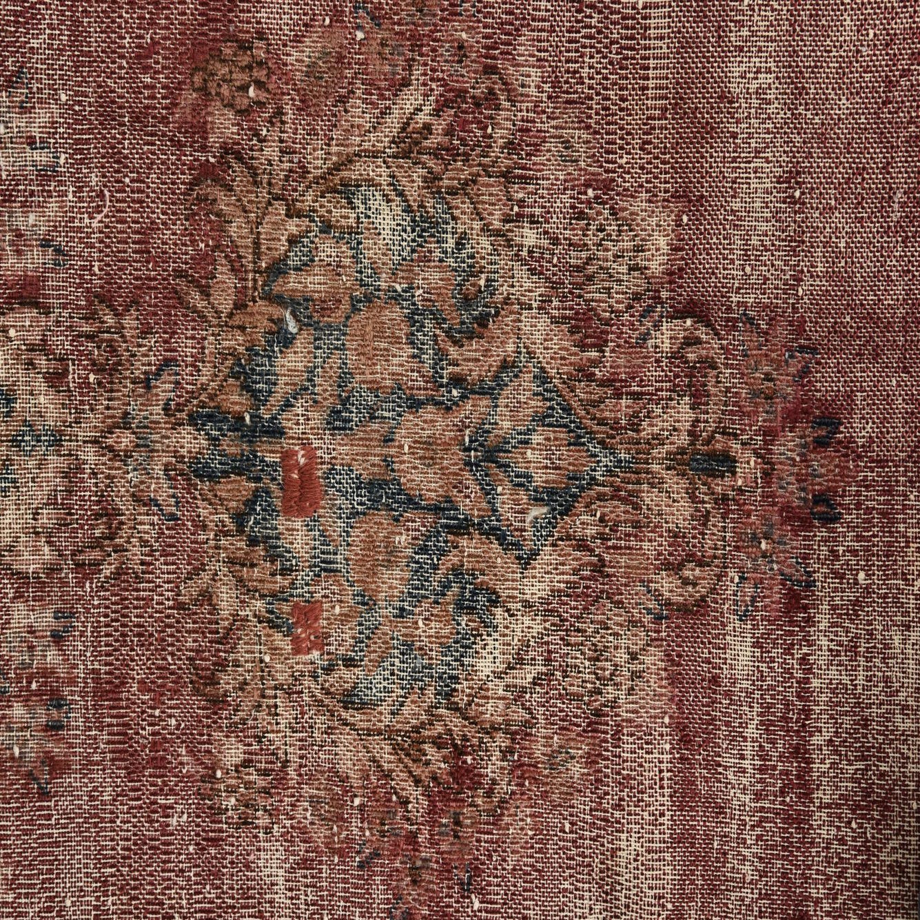 Primary color is Burgundy. Colors in this rug include: Burgundy, Beige, Brown, Navy Blue.