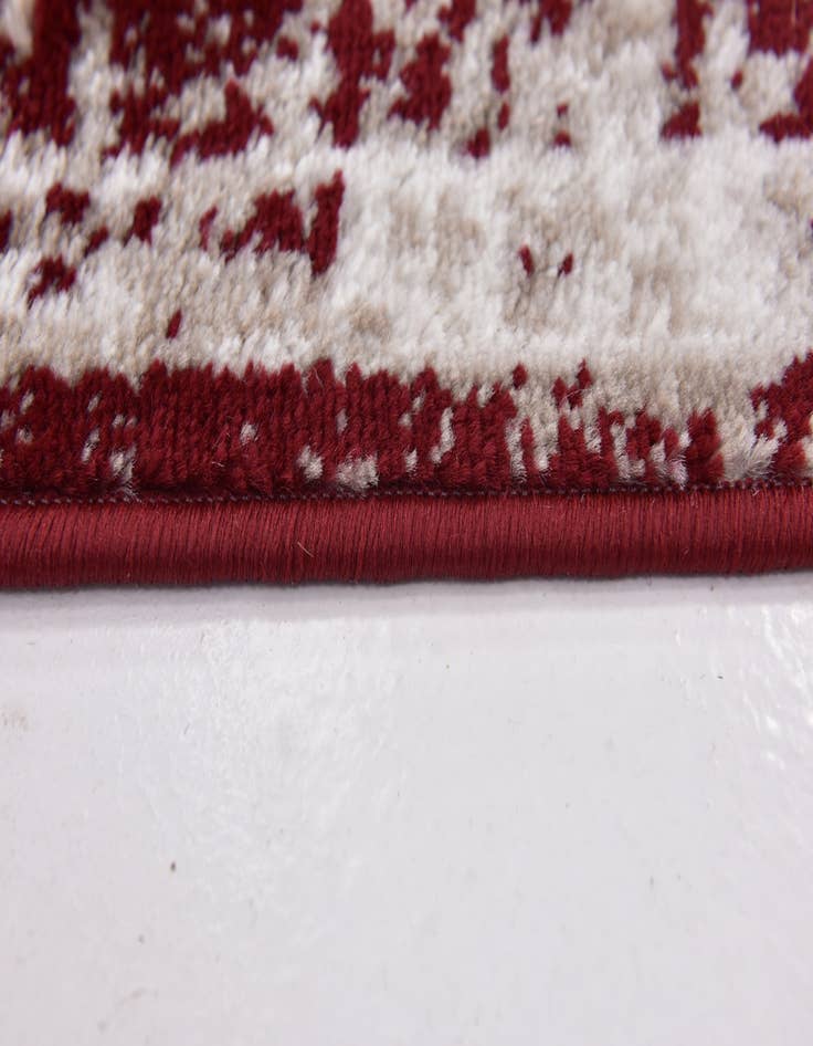Primary color is Burgundy. Colors in this rug include: Burgundy, Beige.