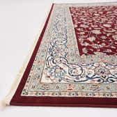 Primary color is Burgundy. Colors in this rug include: Burgundy, Beige, Blue, Cream, Green, Ivory, Navy Blue, Puce.