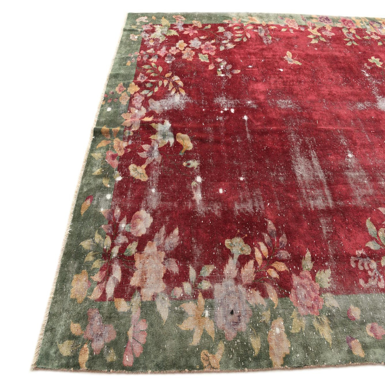 This Persian Ultra Vintage rug is an antique Persian Rug that has been washed, over-dyed, and then shaved down to a low pile. Look at the detail pictures to fully appreciate the uniqueness of this piece.