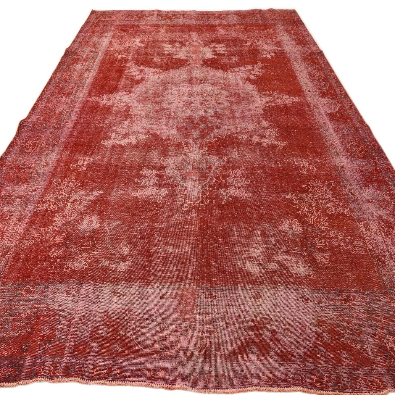 This Persian Ultra Vintage rug is an antique Persian Rug that has been washed, over-dyed, and then shaved down to a low pile. Look at the detail pictures to fully appreciate the uniqueness of this piece.