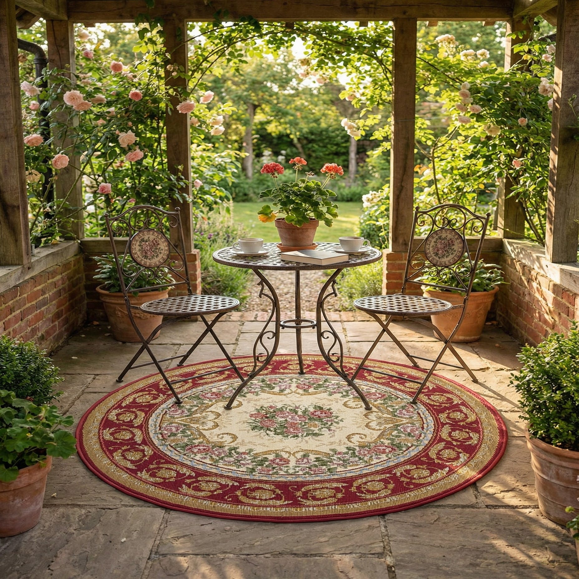 3' x 3' Washable Traditional Indoor / Outdoor Round Rug