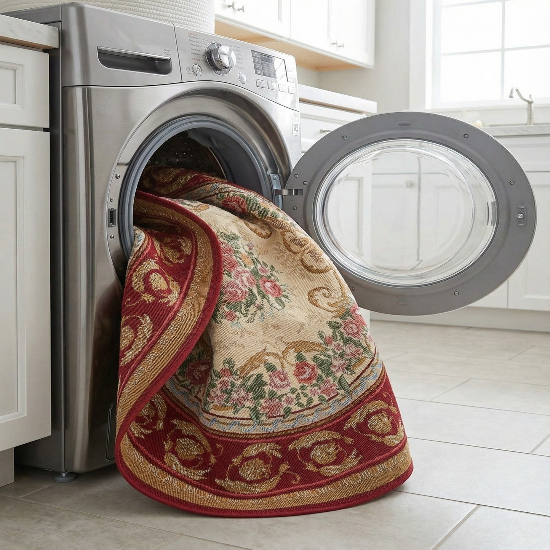 4' x 4' Washable Traditional Indoor / Outdoor Round Rug
