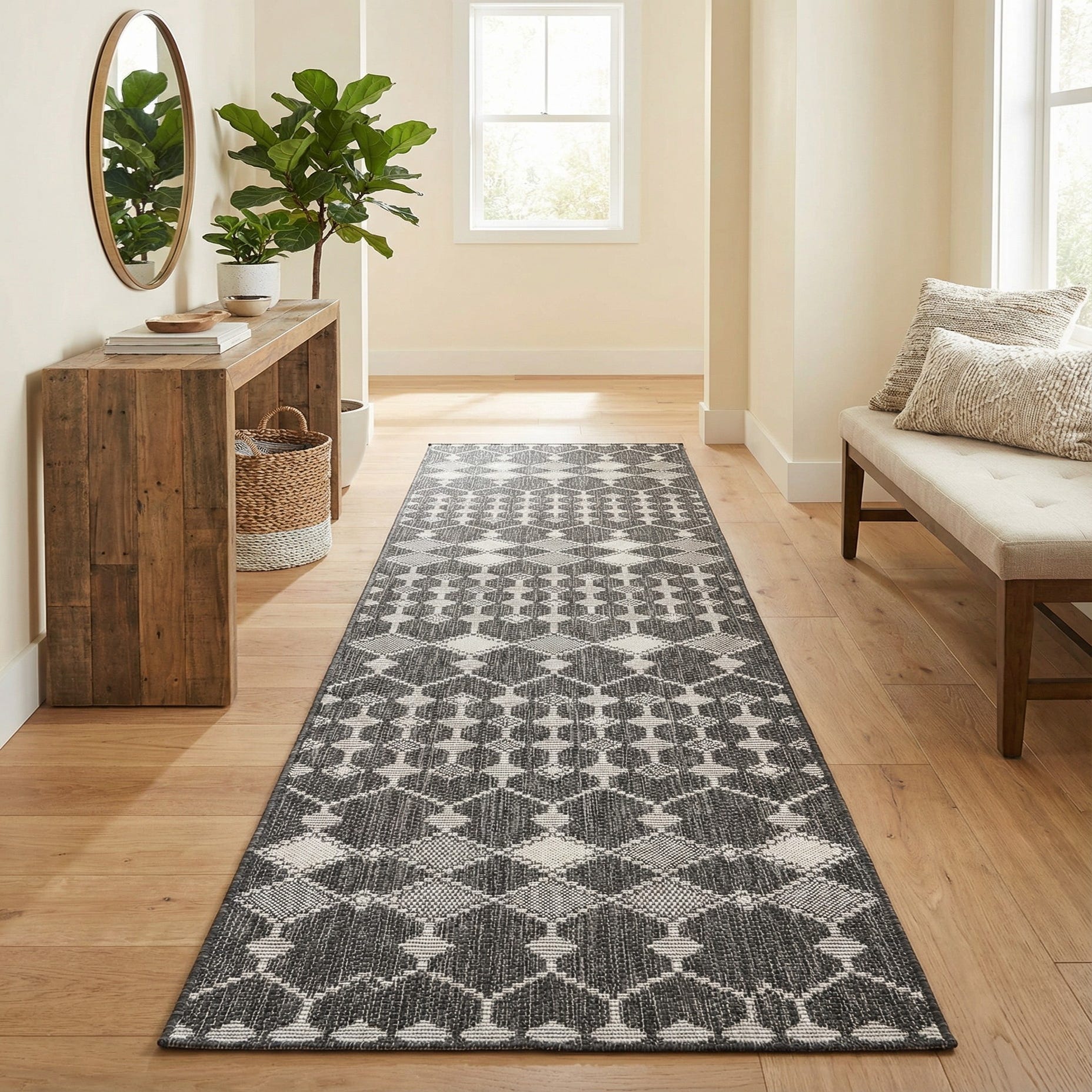 2' 7 x 10' Washable Trellis Indoor / Outdoor Runner Rug